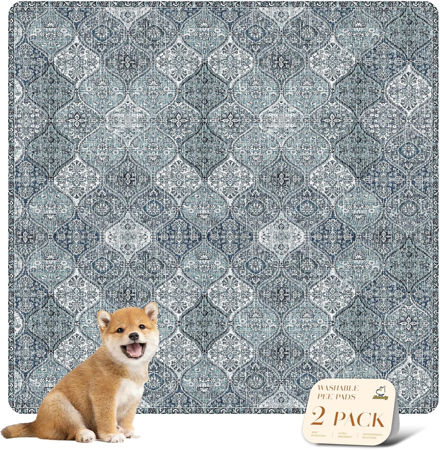 nunubaby Washable Pee Pads for Dogs, Stylish, Non-Slip and Leak-Proof Pee Pads. Reusable Potty Pads for Dogs for Crates and Floors.(Blue/Multi, 36" x36" )