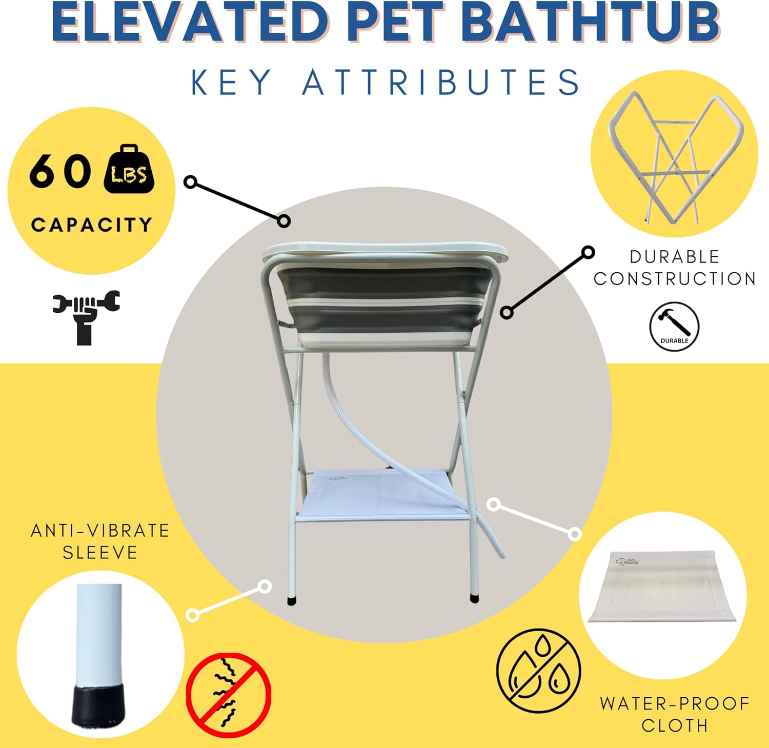 Collapsible Elevated Pet Bathtub, Foldable Washing Station for Small to Medium Dogs and Cats, Portable Pet Shower and Grooming Stand for Indoor and Outdoor Use