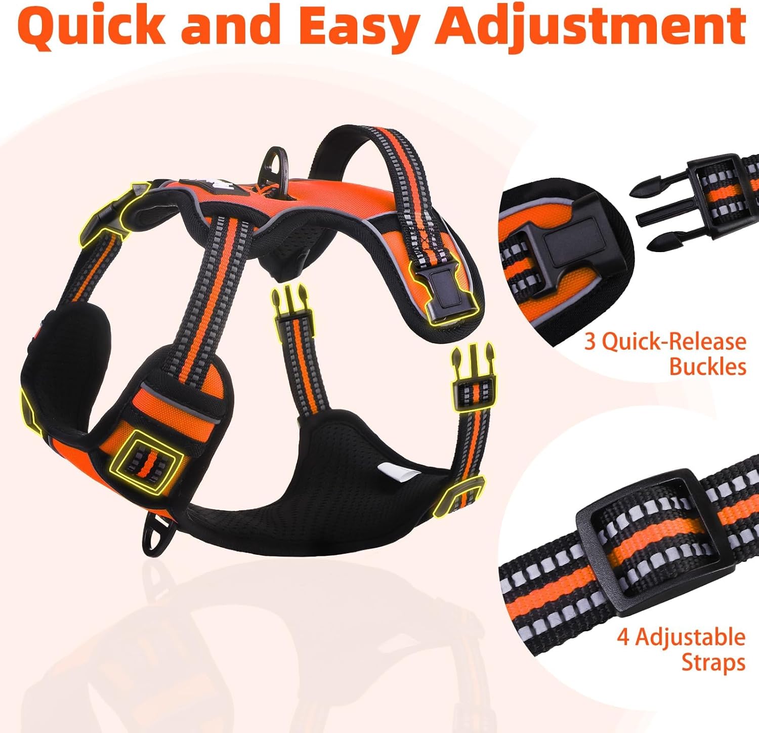 - REFLECTIVE SAFETY STRIP: This dog harness features reinforced stitching for added toughness. Multiple reflective strips improve visibility. Suitable for a variety of occasions and can be used for a variety of activities such as daily walks, running, hiking, and training. Keeping your dog safe on night walks