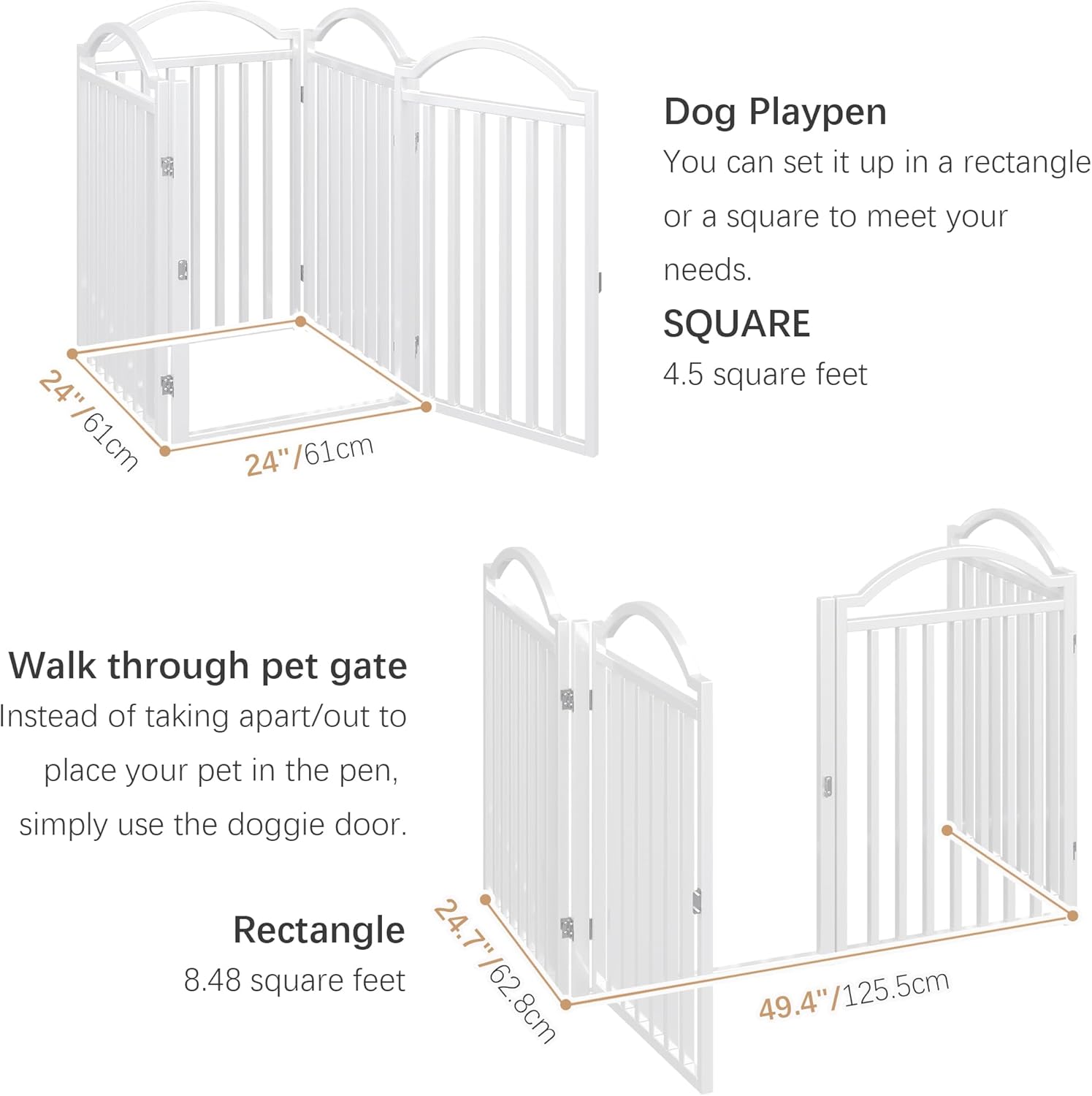 BHG Metal No-Assembly Freestanding Dog Gate with Door Walk Through, Extra Wide 96", Extra Tall 32" Pet Gate, Accordion Puppy Folding Playpen Dog Fence for Indoor & Outdoor, with 2PCS Support - White