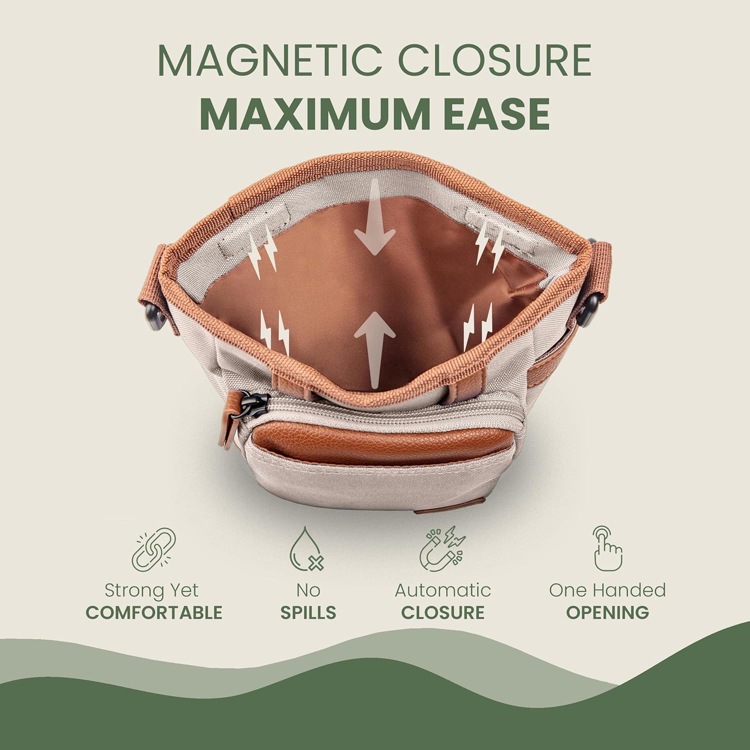 • 【EFFORTLESS ONE-HANDED ACCESS】 - The magnetic closure of this puppy treat pouch ensures fast access to treats, allowing you to reward your dog effortlessly during training sessions or walks without breaking the flow.