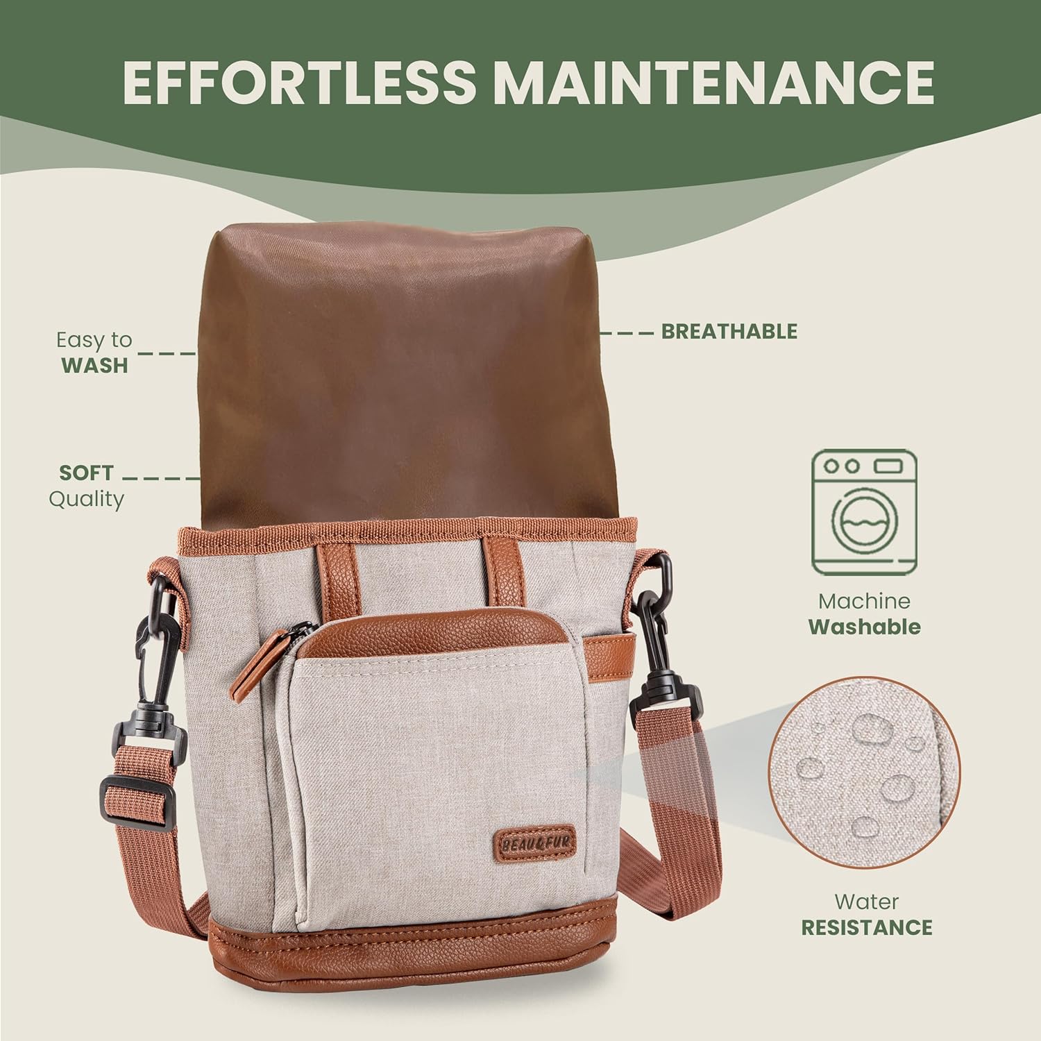 • 【EXPANDABLE SIDE POCKET FOR EXTRA SPACE】 - Got more to carry? No problem! The side pocket expands to fit extra treats, toys, or personal items while staying sleek and slim. Say goodbye to bulky bags!