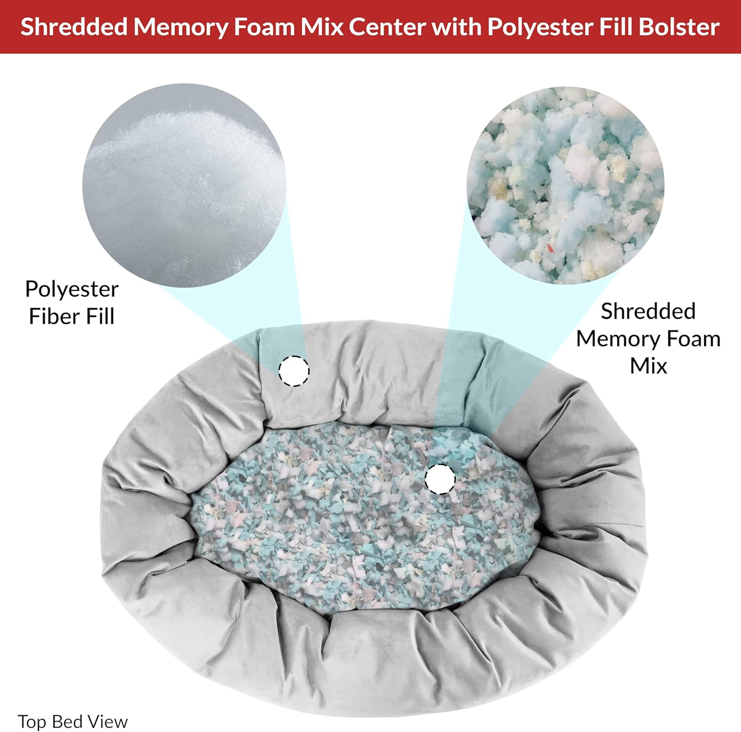 - [Ultimate Comfort with Shredded Memory Foam] Crafted with premium shredded memory foam, our dog bed conforms to your pet’s shape, easing joint pressure and promoting restorative sleep. The round donut shape offers a cozy, inviting space, ensuring every nap is blissfully comfortable and supports natural sleep positions with our dog beds large sized dog. This shredded memory foam center cushion with polyester fiber fill bolster dog bed gives them the comfort they’ll never want to leave!