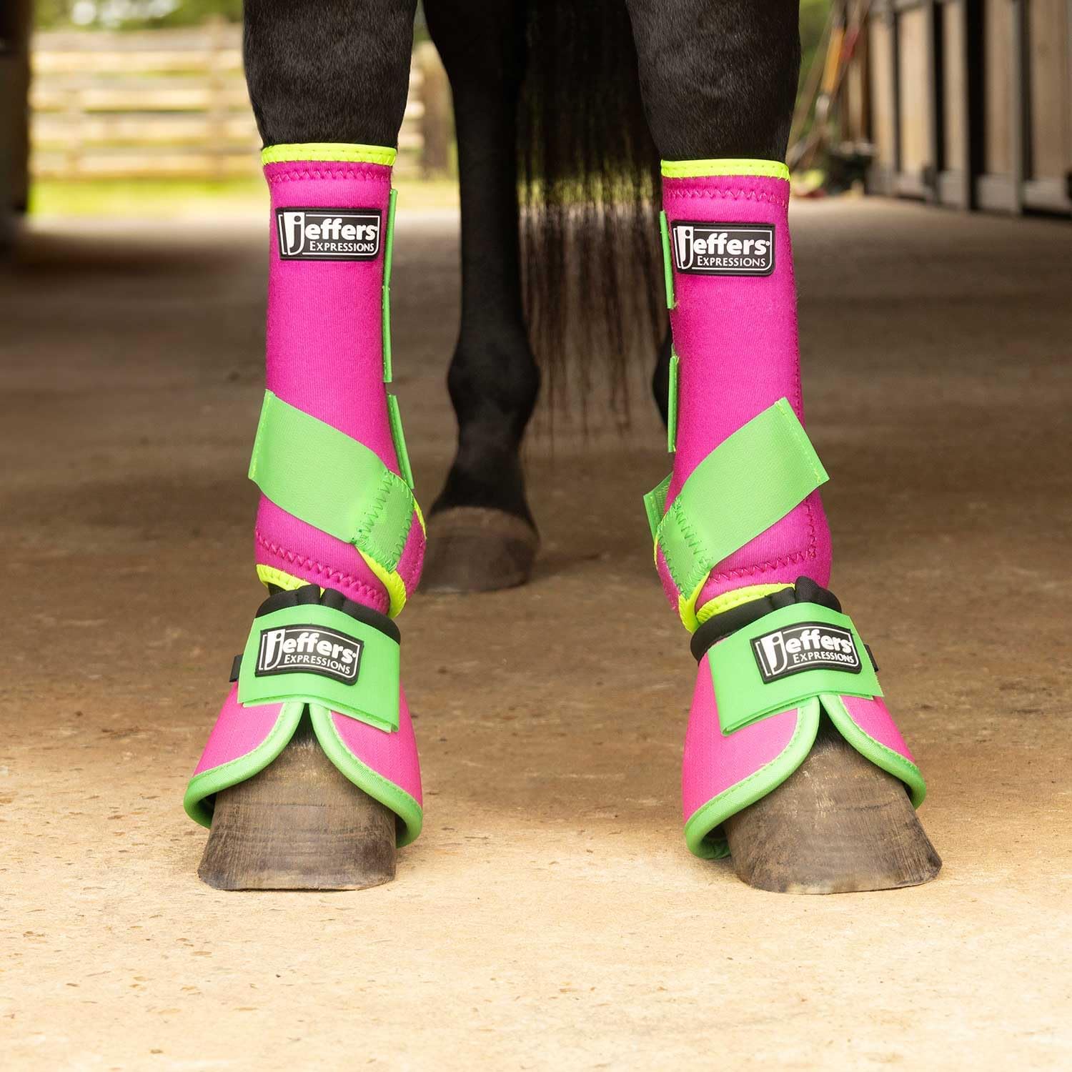 Jeffers Expression Neon Horse Boots 1 Pair – Pink & Lime, Breathable Neoprene with Secure Strap Closures, Durable Premium Protection for Jump Training & Trail Riding – Front & Hind, Large Size