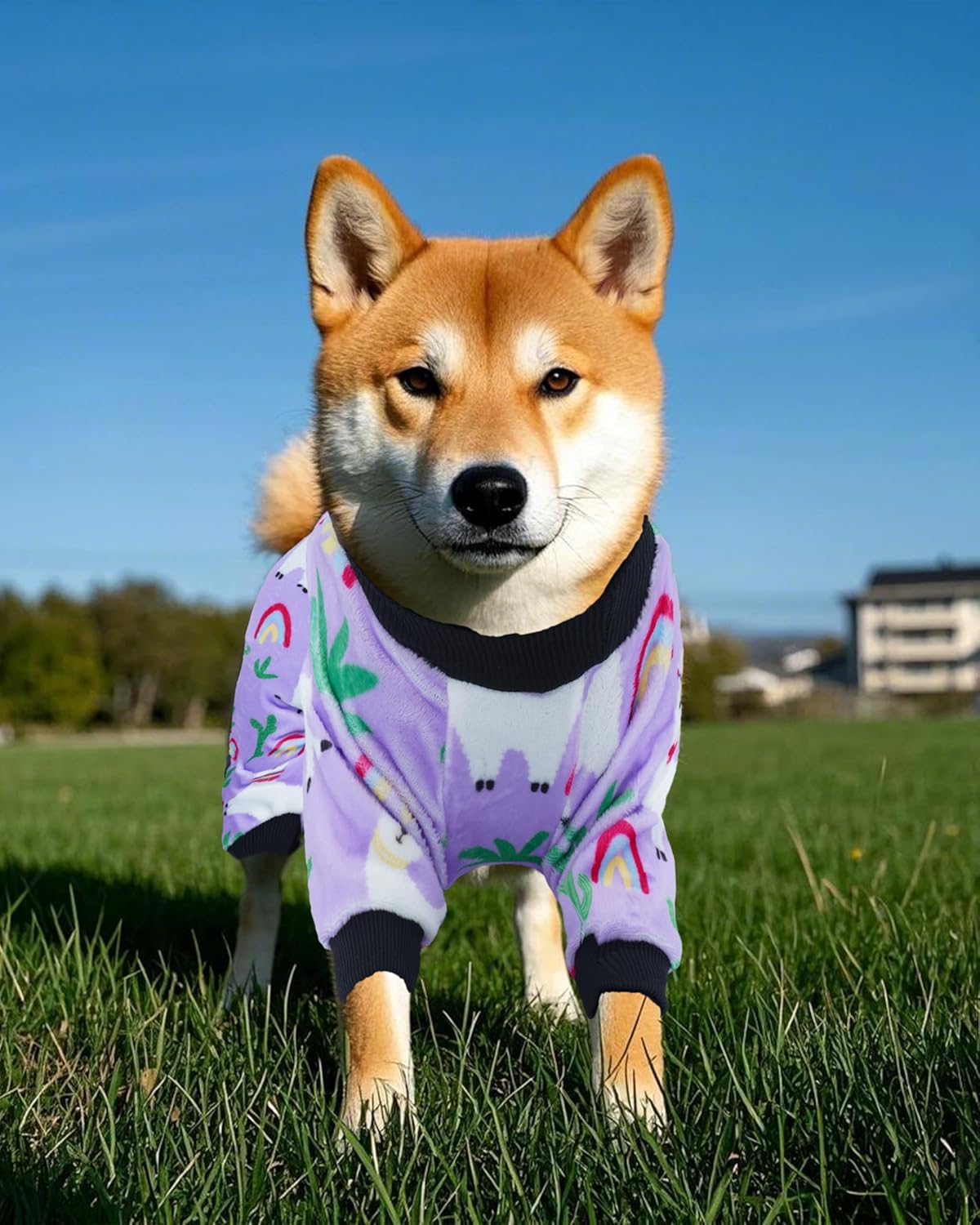 - Cute Spring PJs for Small Dogs: This spring theme dog clothes set contains 4 pieces cute dog fleece pajamas with bee, alpaca, ladybug, butterfly, cherry and colorful flowers patterns, suitable for small medium doggies male and female. Colors are pink, blue, green and purple. It is adorable and eye-catching when your puppies wear it. They are good choice for the multi pet families