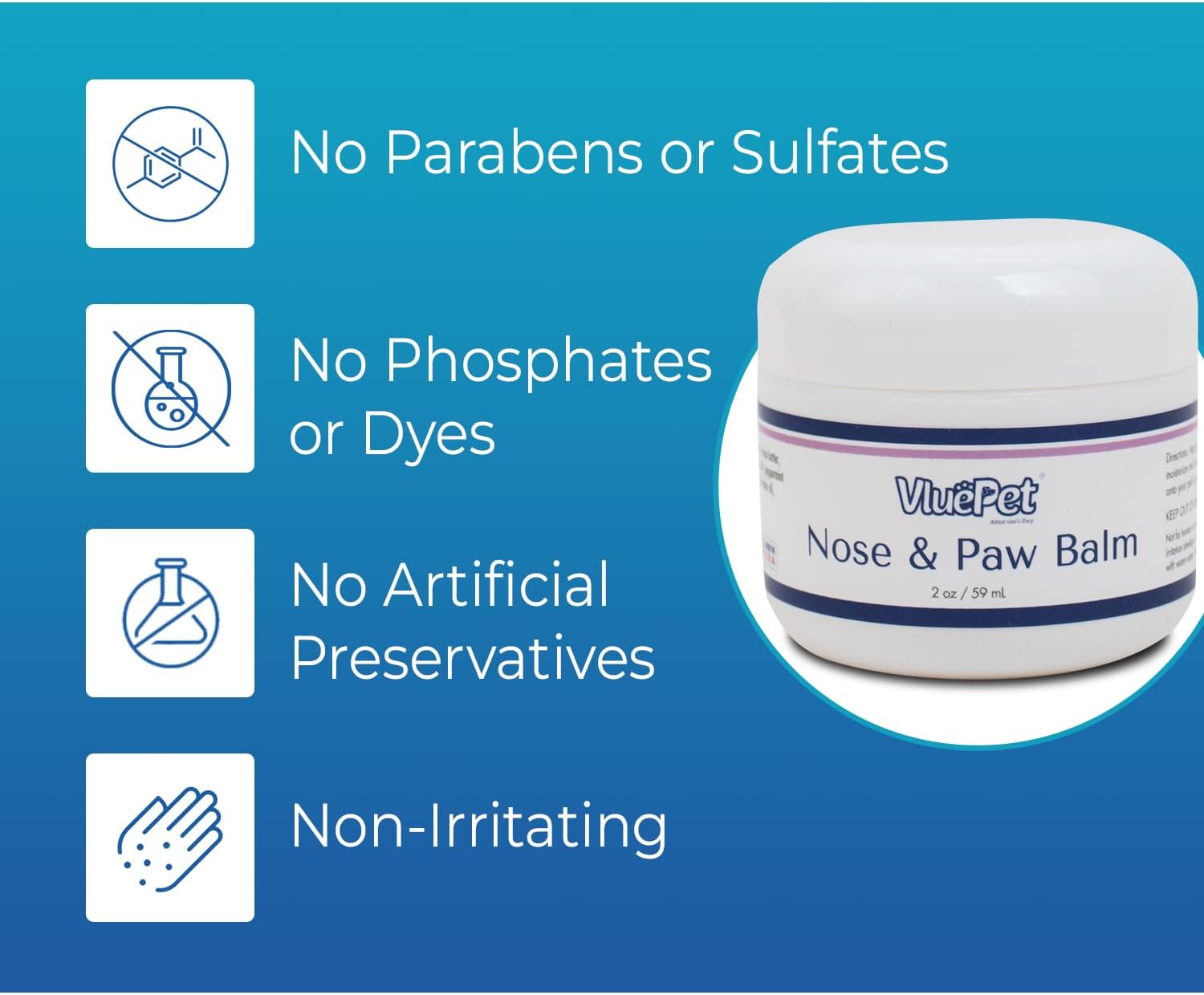 VLUEPET | Nose and Paw Balm | Natural, Lick-Safe Moisturizer & Protector for Cracked, Dry Paws & Nose | Paraben-Free, Sulfate-Free, No Dyes or Preservatives | Soothing Relief for Dogs and Cats (2 oz)