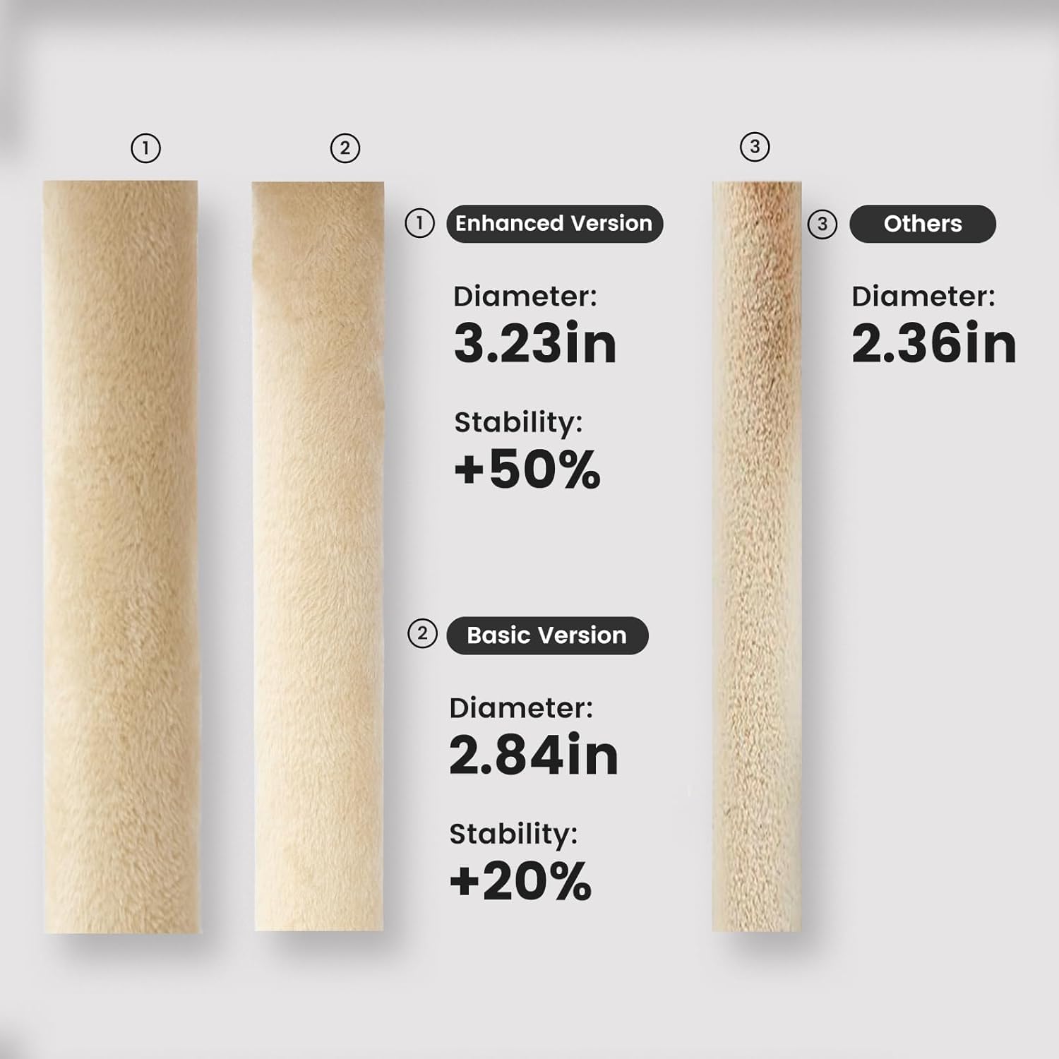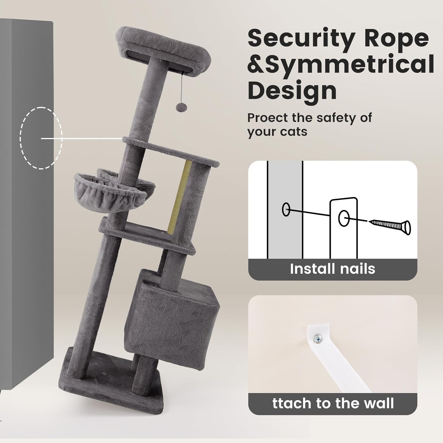 - [Ultra-Stable Heavy-Duty Design | Ideal for Multi-Cat Households] ✅ Reinforced Structure: Features 2.84-inch thickened posts wrapped in 450D wear-resistant plush fabric, supporting up to 30 lbs. Stays wobble-free even with 5 cats playing simultaneously. ✅ Extra-Large Base: 19" x 23" oversized base with anti-slip design prevents tipping.