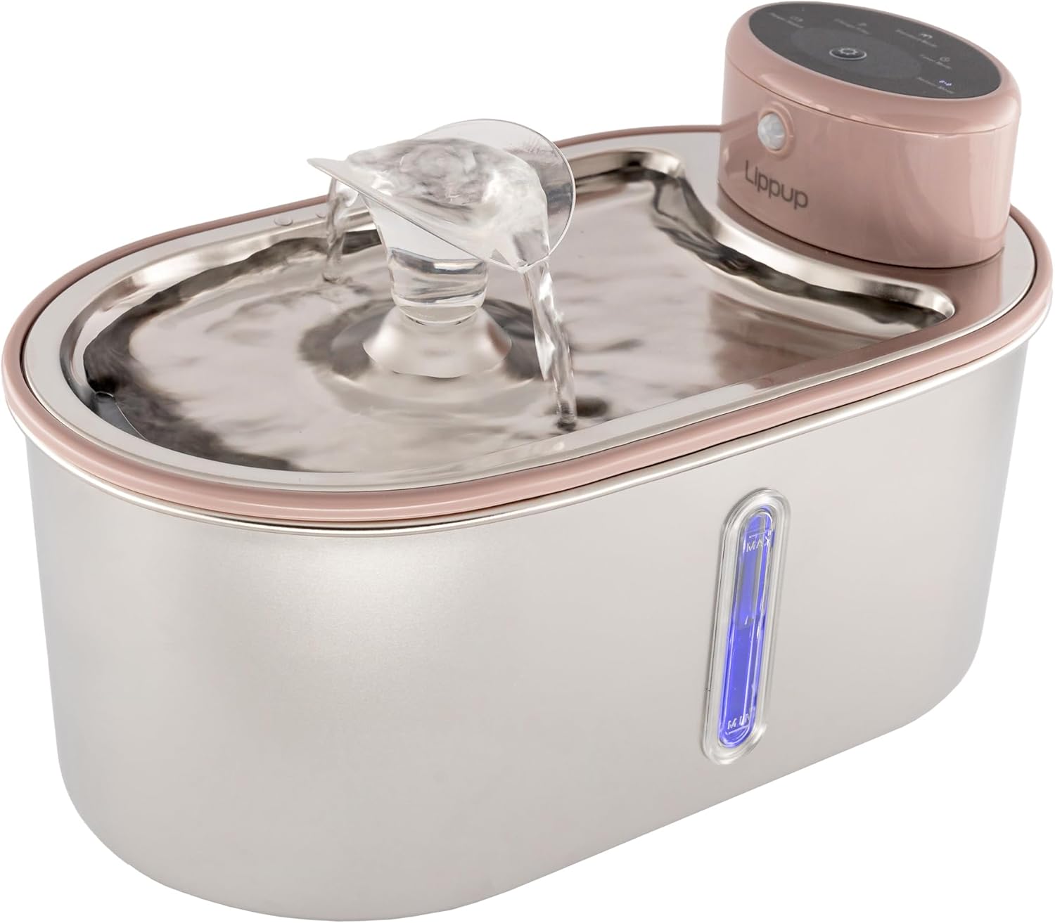 - [PREMIUM STAINLESS STEEL BY LIPPUP]: Constructed from high-quality 304 stainless steel, the LIPPUP fountain is BPA-free, rust-resistant, and designed for long-term use. It’s an elegant and practical pet water dispenser for any home.
