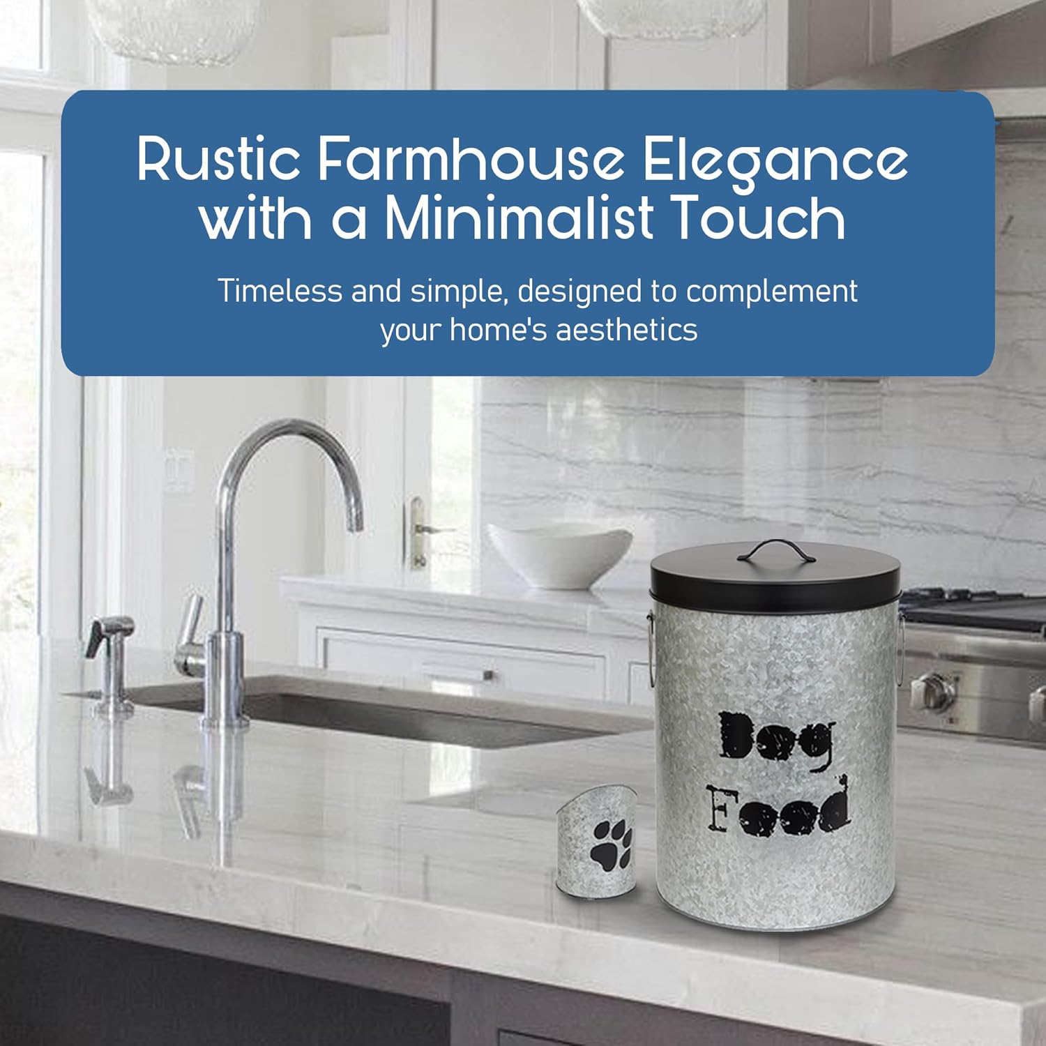 - Elevate Storage With Style: Say goodbye to unattractive plastic bins with this durable, large-sized pet food storage solution. Perfect for any space, from the laundry room to your pet's feeding area, it blends functionality with a chic design that complements your home.