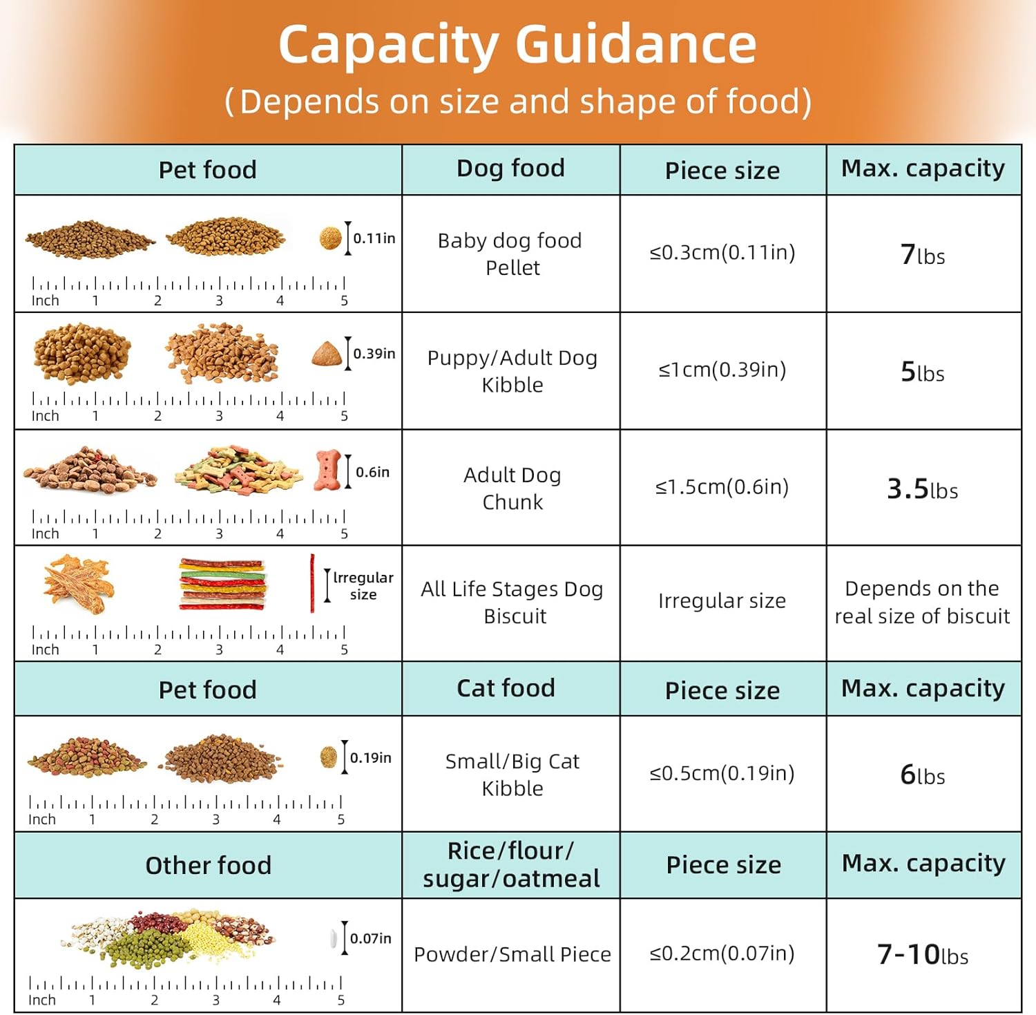 - MULTI-PURPOSE STORAGE : Our pet food container is suitable for storing dog food、cat food、bird seed、fish food、rice、 dry food、cereals、oats、flour and other large and small grains, as well as washing powder used at home. It is also a good choice.