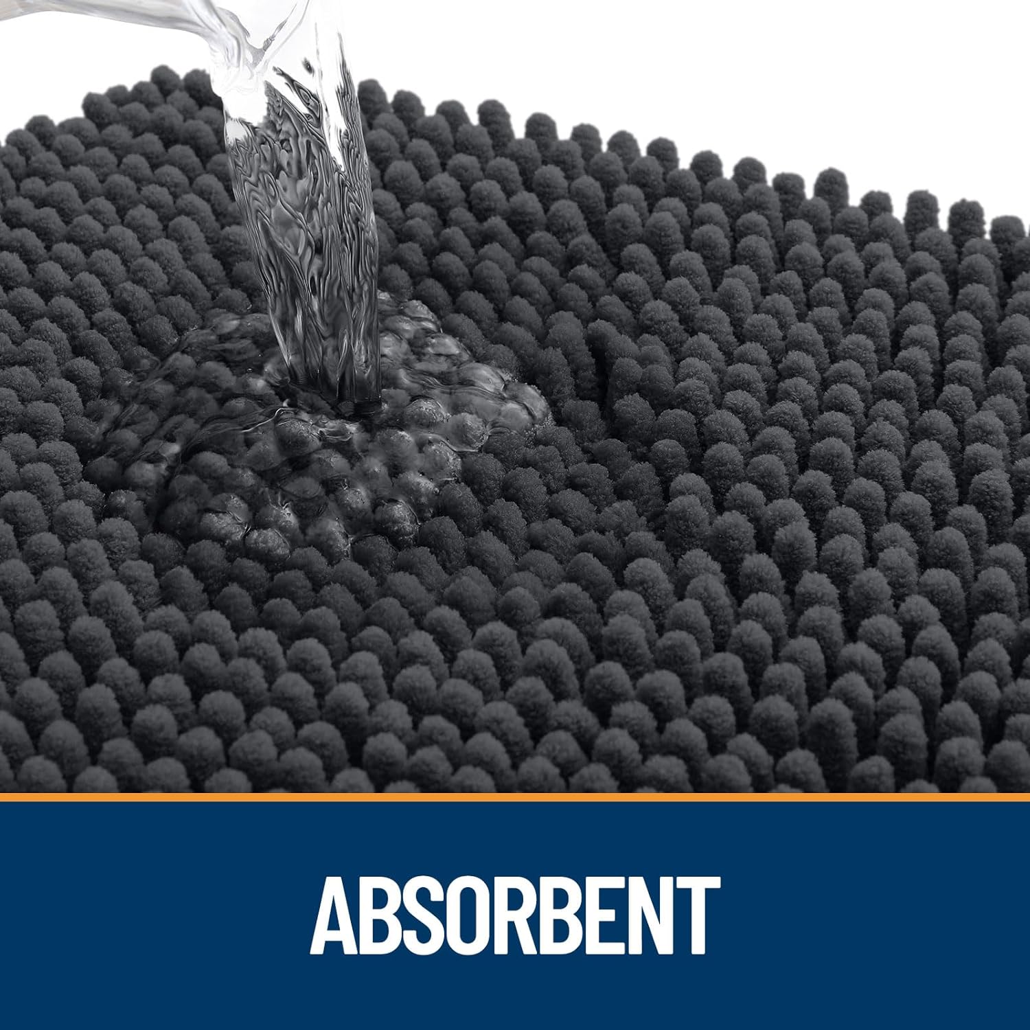 OLANLY Dog Door Mat for Muddy Paws 40x24, Absorbs Moisture and Dirt, Absorbent Non-Slip Washable Doormat, Quick Dry Chenille Mud Mat for Dogs, Entry Indoor Entryway Carpet for Inside Floor, Dark Grey
