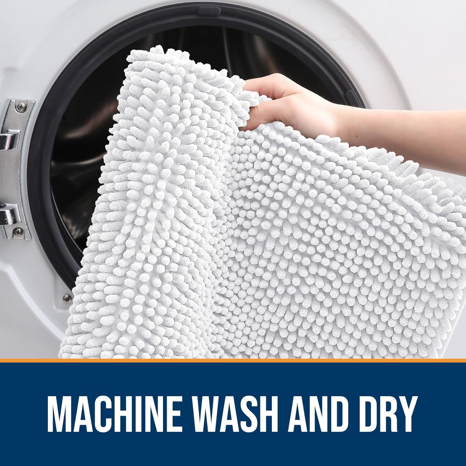 OLANLY Dog Door Mat for Muddy Paws 34x21, Absorbs Moisture and Dirt, Absorbent Non-Slip Washable Doormat, Quick Dry Chenille Mud Mat for Dogs, Entry Indoor Entryway Carpet for Inside Floor, White