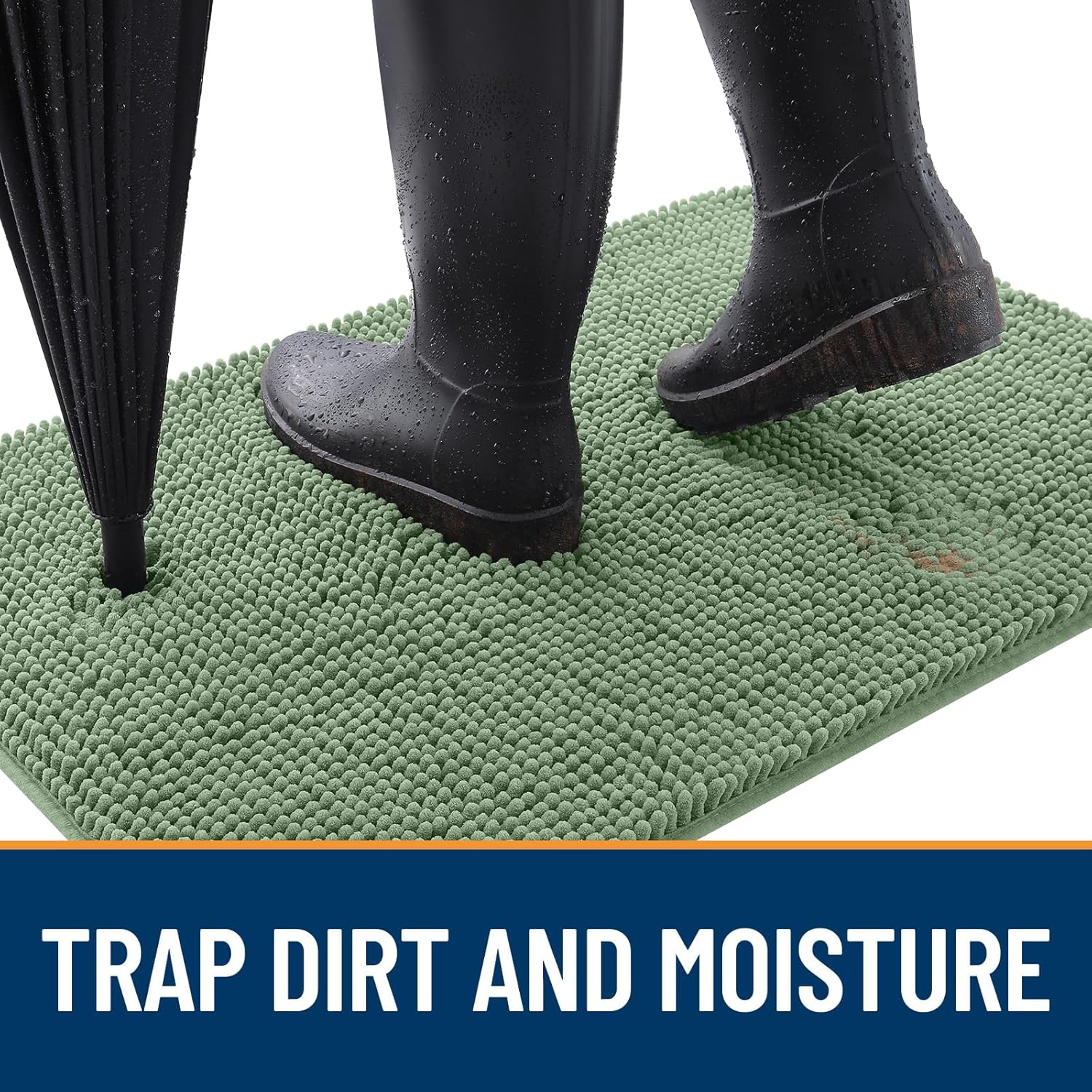 OLANLY Dog Door Mat for Muddy Paws 47x20, Absorbs Moisture and Dirt, Absorbent Non-Slip Washable Doormat, Quick Dry Chenille Mud Mat, Entry Indoor Entryway Carpet for Inside Floor, Olive Green