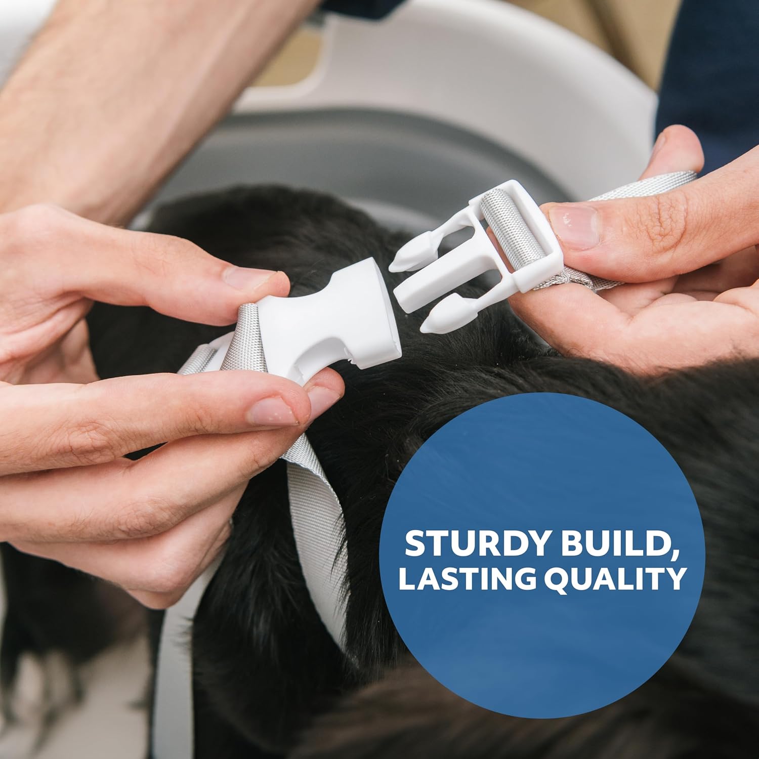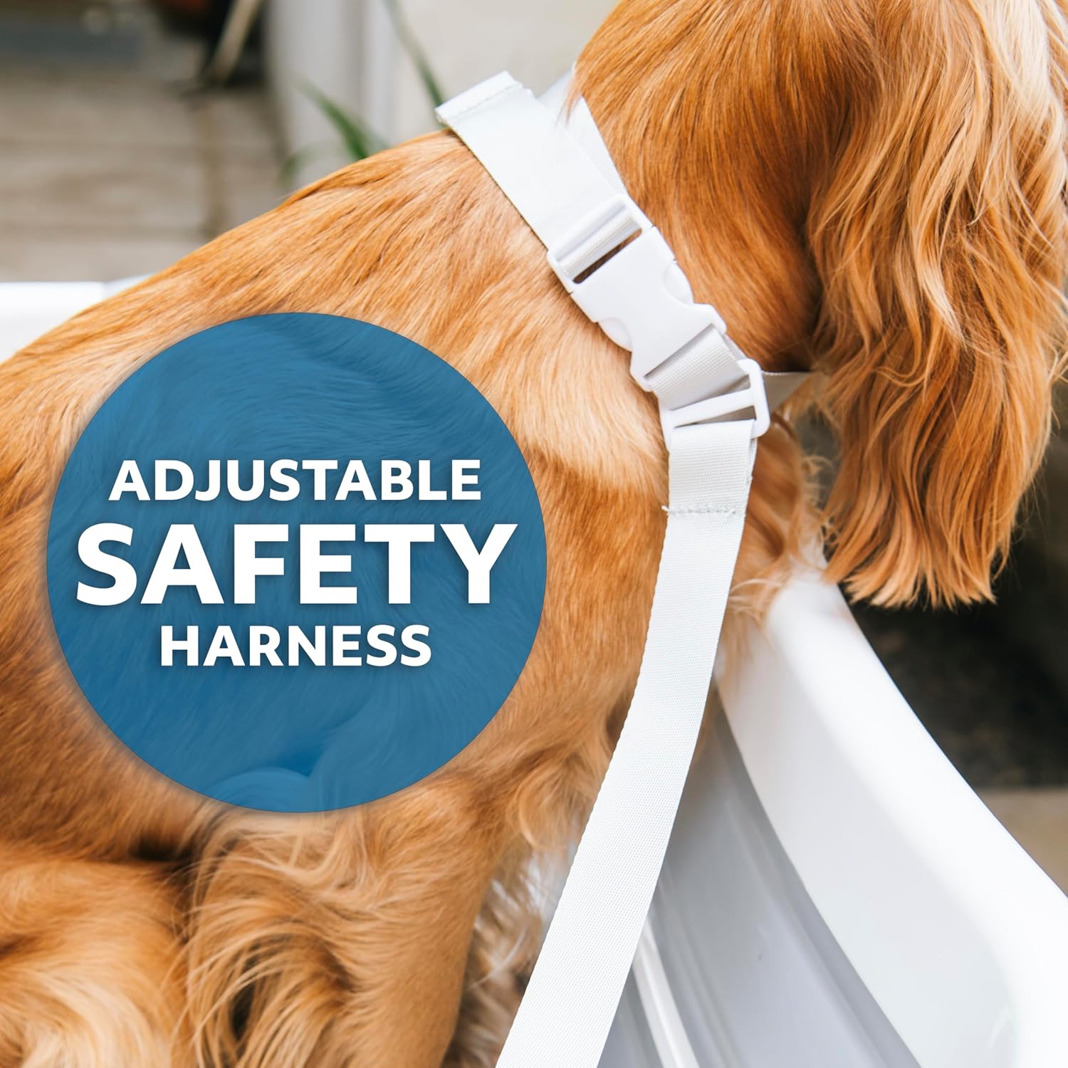 - STABLE & SECURE: Adjustable harness ensures your pet stays put for an easy bath experience