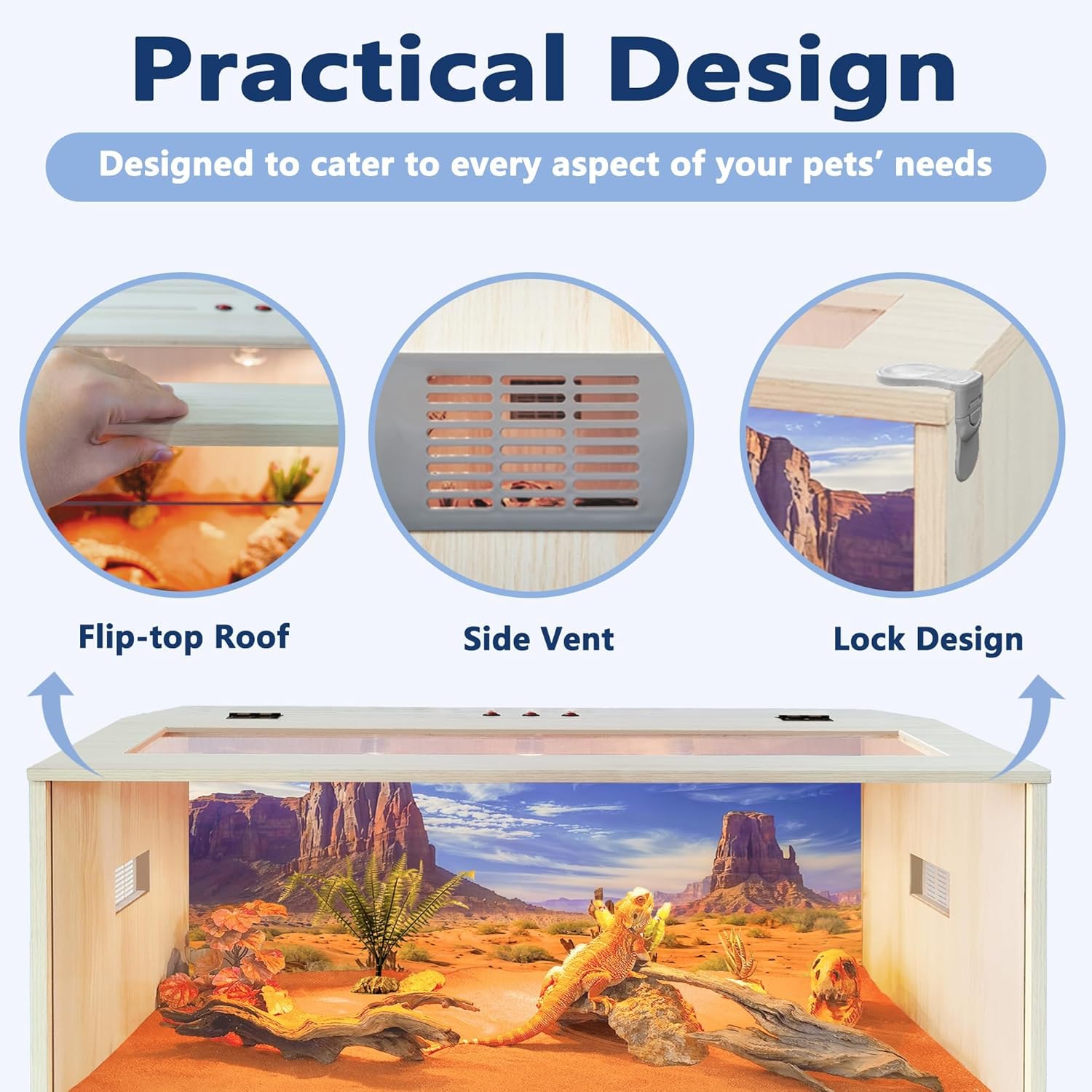 - 【Built-in Bulb Sockets】Featuring two built-in bulb sockets (three in the 40&48-inch version) compatible with E27 heat bulbs, night lights, and more (bulbs not included). Easily set up your lighting for the perfect reptile habitat.