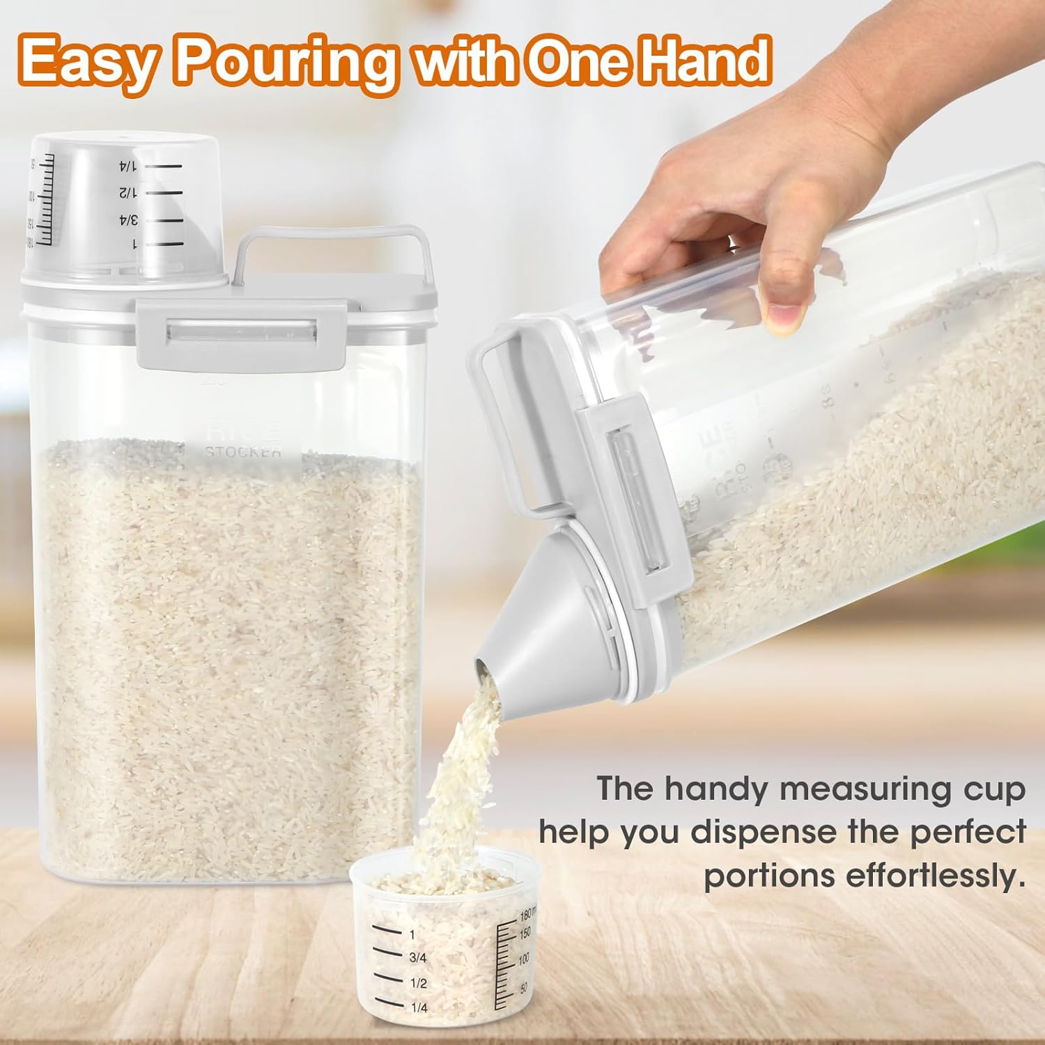 TBMax Rice Storage Container 2 Pack, Plastic Kitchen Pantry Food Storage Container with Cup, Small Pet Dog Cat Food Container Dispenser