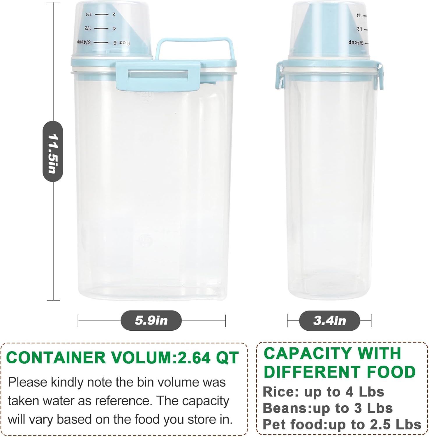 TBMax Rice Storage container 4 Lbs, Small Rice Dispenser with Measuring Cup, Blue Cereal Containers Flour Bin, Kitchen Food Storage Container and Pantry Organizers, Pet Dog Cat Food Dispenser