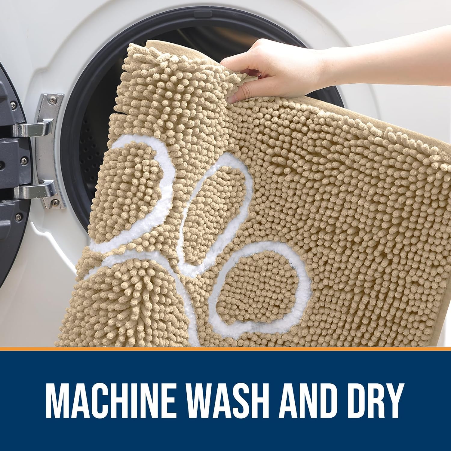 OLANLY Door Mat for Muddy Dog Paws 40x32, Ultra Absorbent Chenille Mud Doormat with Paw Print Design, Non-Slip Washable Doormat for Indoor Entryway, Quick-Dry Pet Bed Mats for Dirty Dogs, Beige