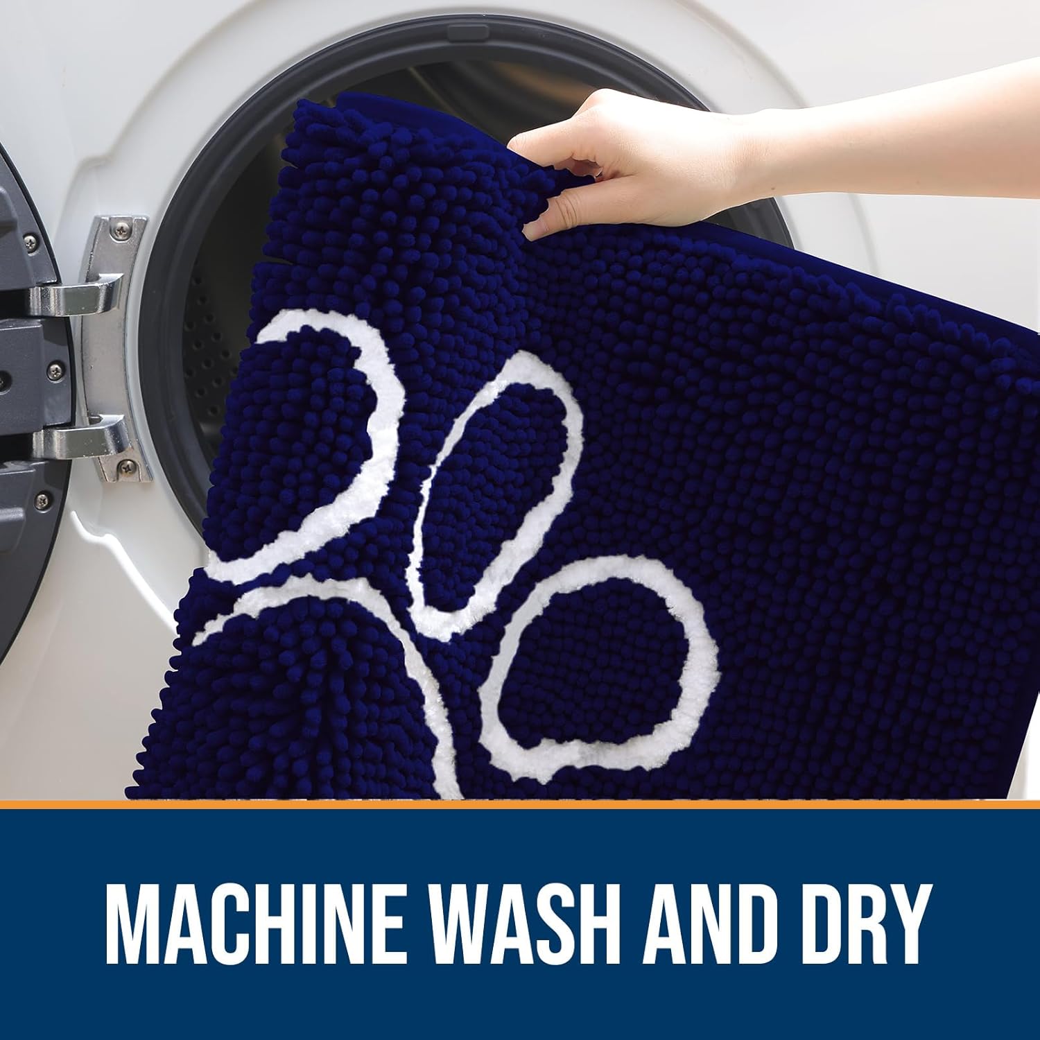 OLANLY Door Mat for Muddy Dog Paws 47x32, Ultra Absorbent Chenille Mud Doormat with Paw Print Design, Non-Slip Washable Doormat for Indoor Entryway, Quick-Dry Pet Bed Mats for Dirty Dogs, Navy Blue