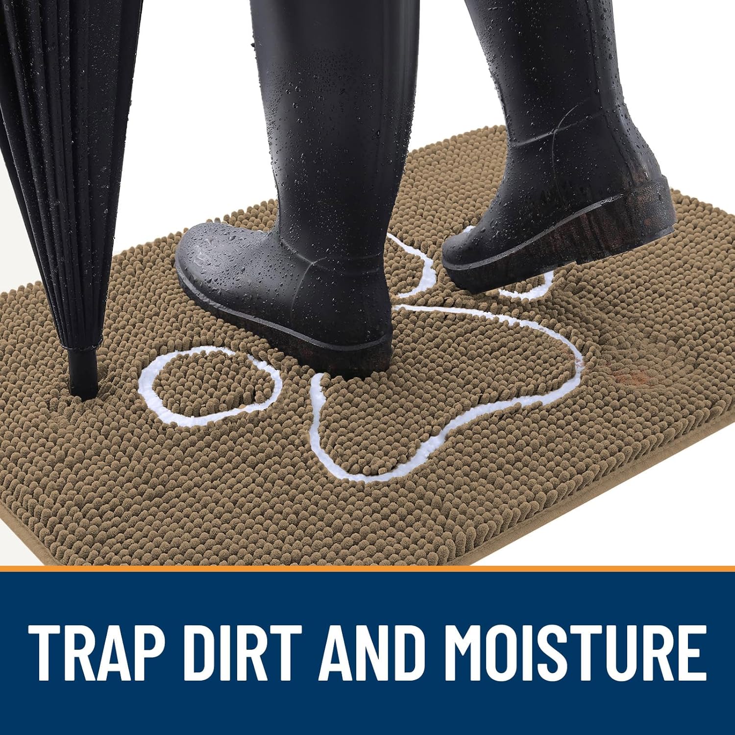 - [ABSORBS MOISTURE AND DIRT] OLANLY indoor dog mat for muddy paws is crafted to efficiently remove dirt and swiftly absorb moisture. With our doormat, your shoes will be instantly clear of any water, dust, grit, muck, sand, sleet, grass, slush, rain, or snow upon entering the house. It's an excellent choice for use as an entryway door mat, a welcoming door mat, or a dirt-trapping mat.