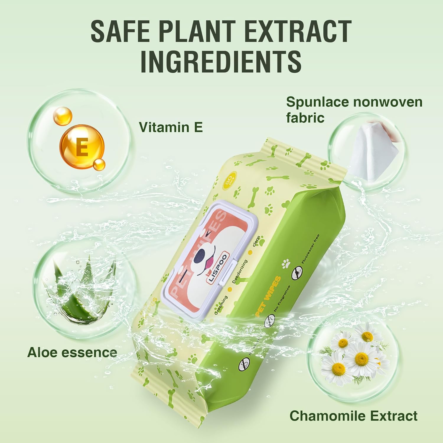 - Widely applicable, universal for all dogs and cats: LISPOO pet wipes are crafted with a mild, plant-based formula to safely remove dirt, odors, and stains from your pets paws and butt. Hypoallergenic and non-irritating dog wipes and cat wipes are suitable for daily dog and cat grooming care or cleaning after going out. Natural ingredients protect the delicate skin of pets.