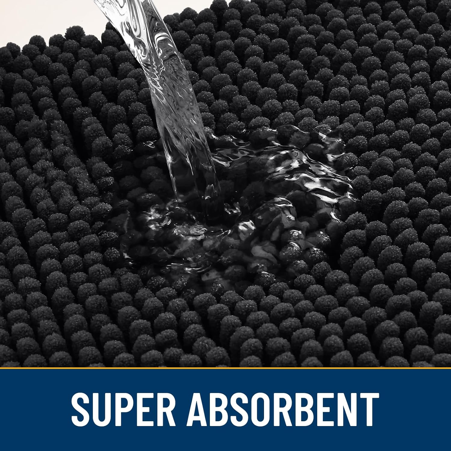Smiry Dog Door Mat for Muddy Paws 47x32, Absorbs Moisture and Dirt Doormat, Non-Slip Washable Quick Dry Chenille Front Door Mat Indoor Entrance, Entryway Carpet for Inside Floor, Black
