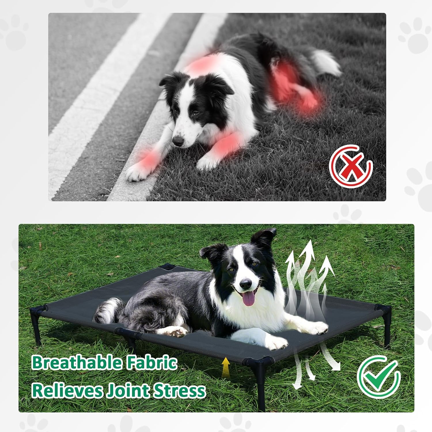 Elevated Dog Beds Large Sized Dogs, Cooling Raised Pet Bed with Frame & Breathable Mesh, Portable Indoor & Outdoor Lifted Dog Hammock Off Ground (L, Black)