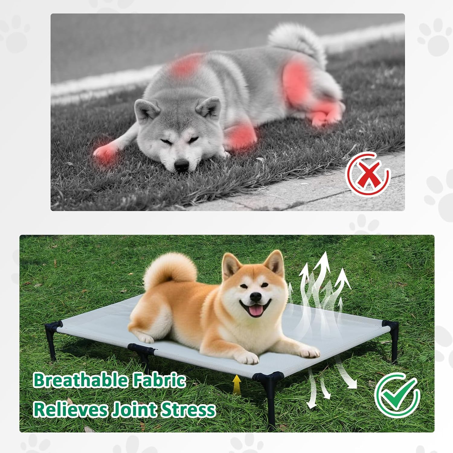- BREATHABLE TESLIN MESH: This outdoor dog bed comes with breathable and durable Teslin mesh, provides airflow and firm support to relieve joint pressure. Our dog cot bed is suitable for dogs of all life stages, from puppy to the senior