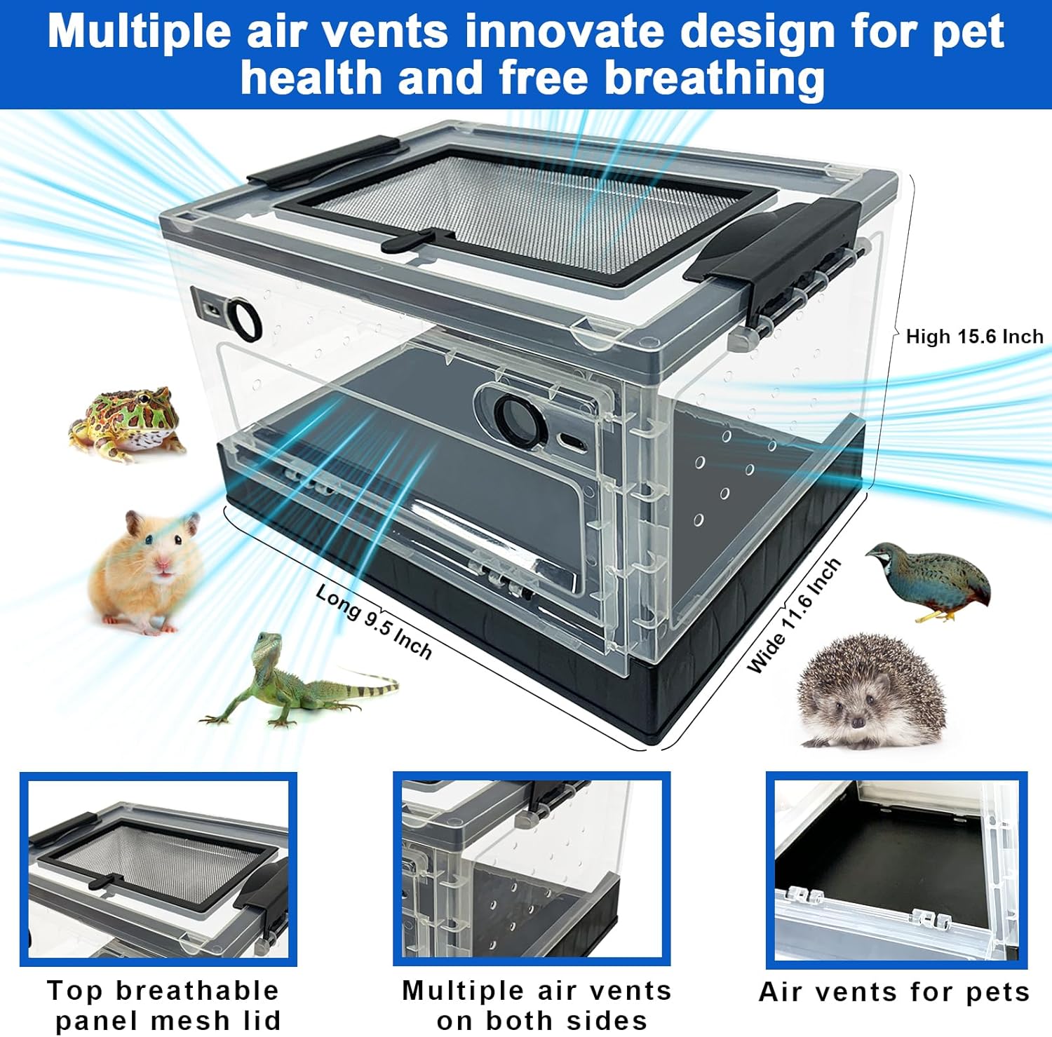 - 【Innovate design for pet health and free breathing】Our reptile and small animal cage for breeding house has top breathable panel mesh lid,multiple air vents on both side and air vents on bottom for better air circulation and flow which let the pet in product have free breathing