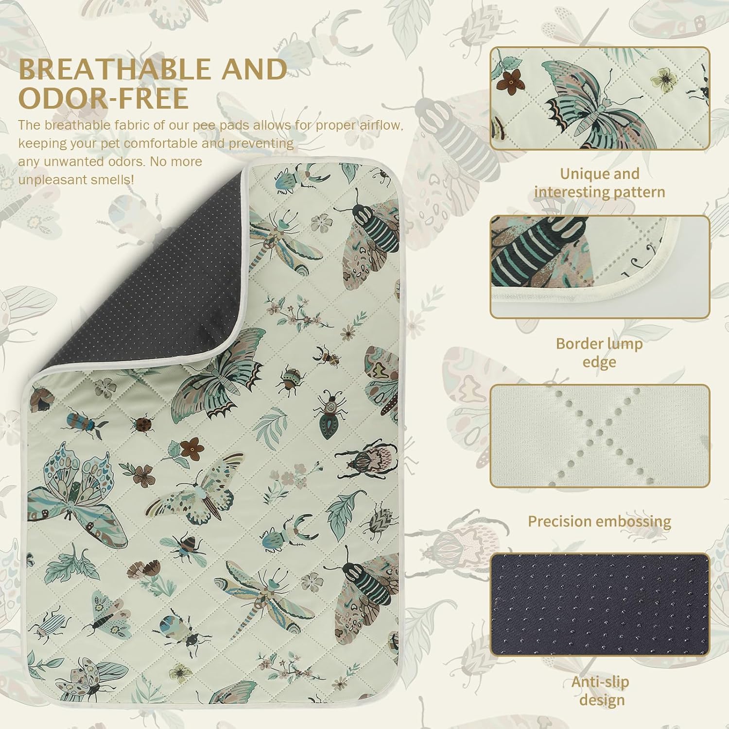 IEUUMLER Washable Pee Pads for Dogs, 2 Pack Insect Pattern Reusable Waterproof Puppy Potty Pads, Non-Slip Absorbent Pet Training Pads for Playpen Crate Bed EU014