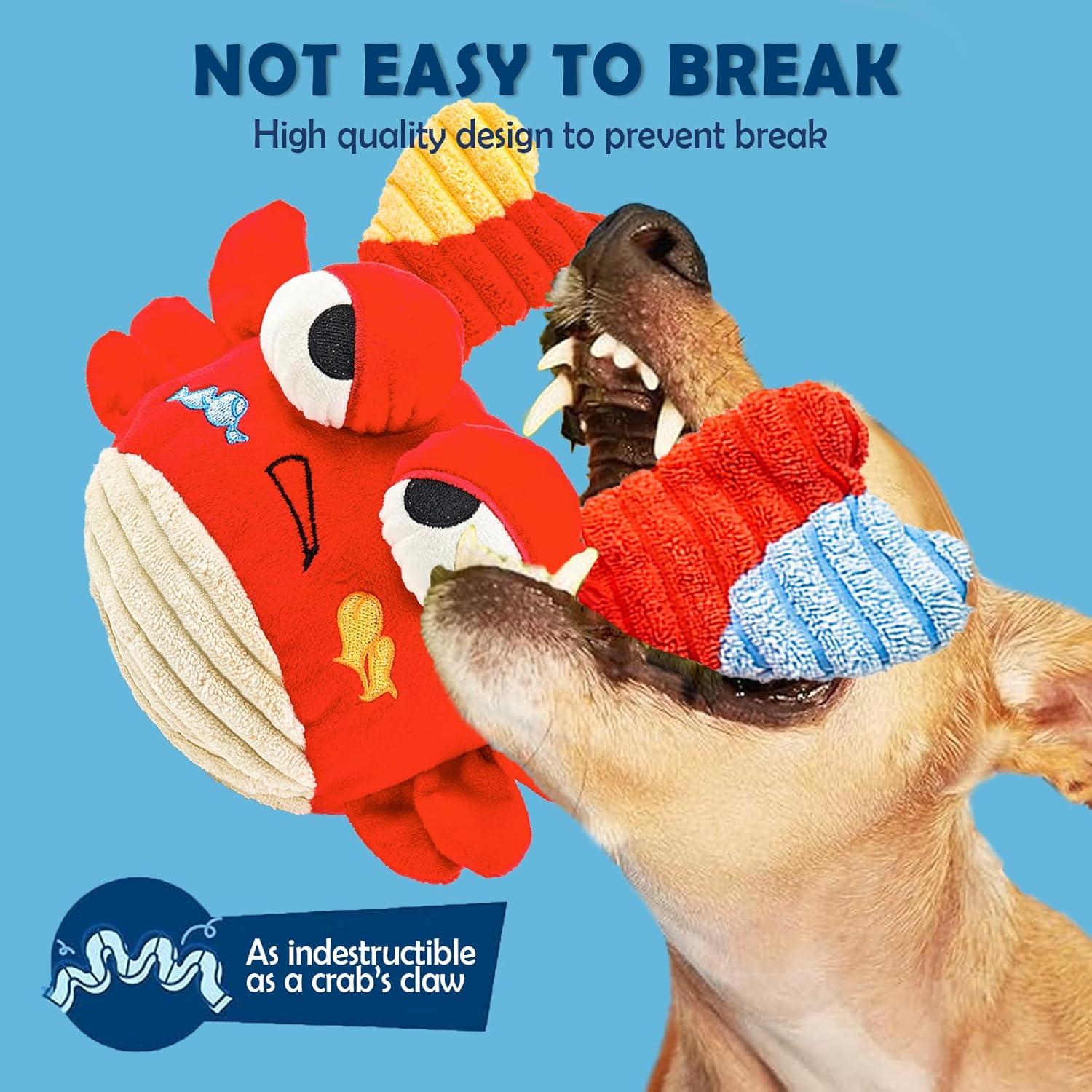 - Unique humorous Crab Design: The interactive crab dog toy is made of high-quality, ultra-soft plush and thick cotton material, ensuring safety, durability, and gentleness on your pet's teeth and gums. Each plush crab features an upgraded, sturdy Velcro strap on its back, which is safe for dogs and ensures the ball stays securely in place without falling or breaking during play.