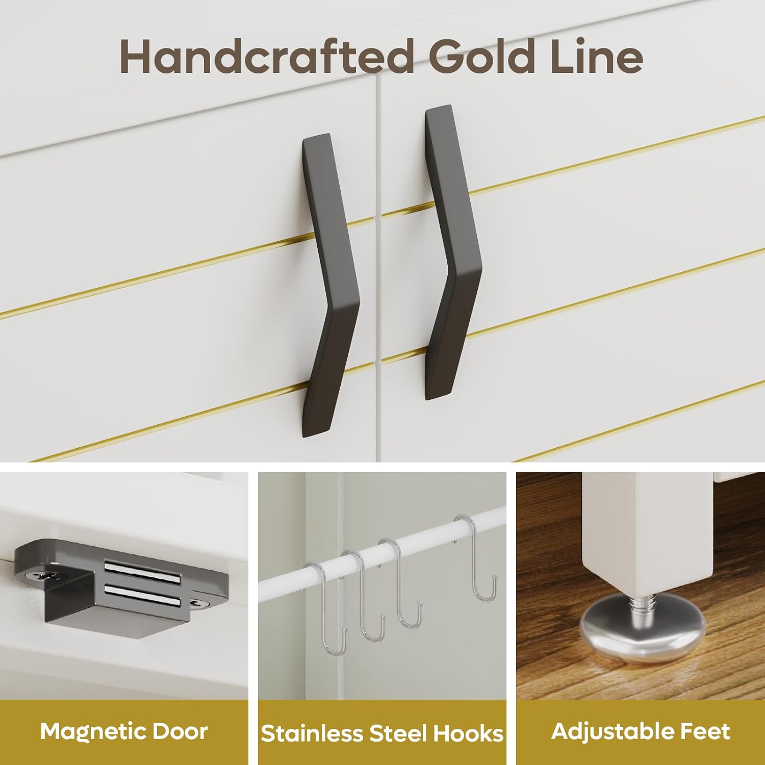 - Elegant Aquarium Stand: The 20 gallon long aquarium stand features a sleek cabinet with horizontal gold accents, unique V-shaped handles, and a matte finish, offering a luxurious industrial look that fits seamlessly into any home or office