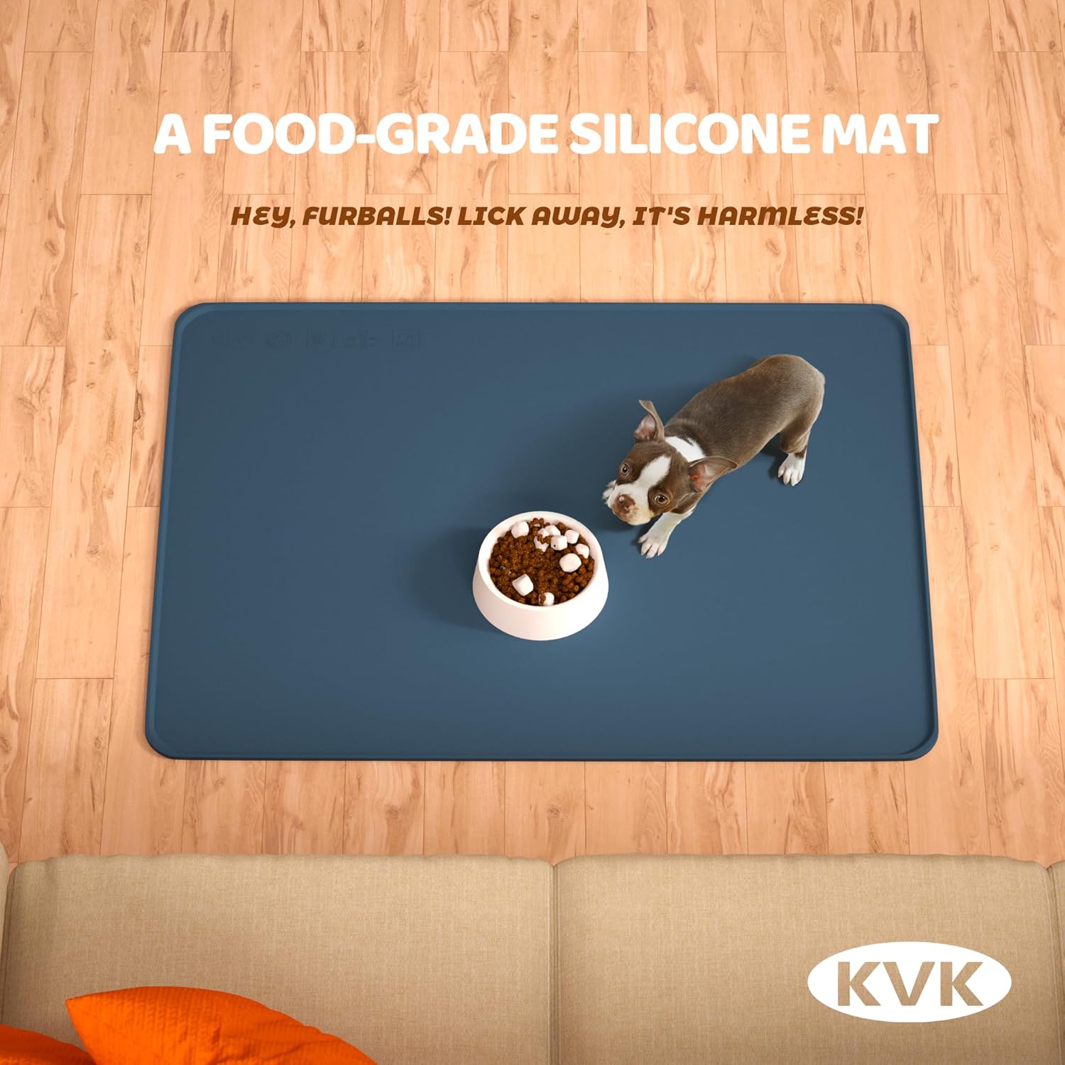KVK Dog Food Mat, 39.4×29.5in Extra Large Silicone Pet Feeding Mat - Waterproof, Non - Slip, Chew - Resistant for Food & Water, Protect Floors (Royal Blue)