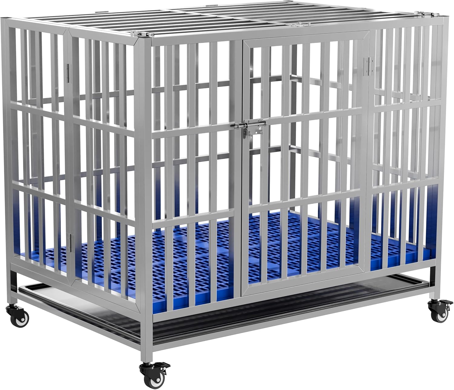 - 【Versatile】This stainless steel dog cage is available in 30", 37", 42", and 48" sizes, suitable for dogs of various breeds and sizes.