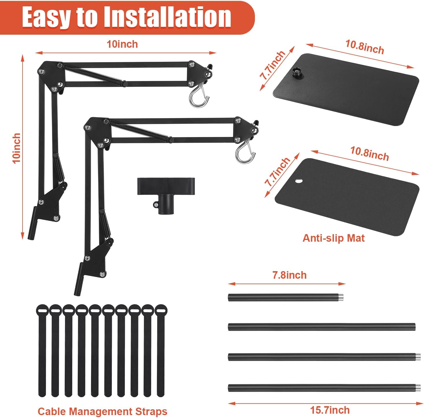 - 【Multi-angle Double Cantilever】: The reptile lamp stand features a unique dual-arm design that enables 360-degree rotation and 180-degree folding adjustments for each arm. This allows you to conveniently suspend and adjust two light fixtures simultaneously, including heat lamps, UVB lights, and lighting fixtures. Tailor the positioning to provide your pet with optimal coverage and comfort, ensuring the best basking conditions for your bearded dragon,snake,turtle,gecko,chameleon or any other reptile.