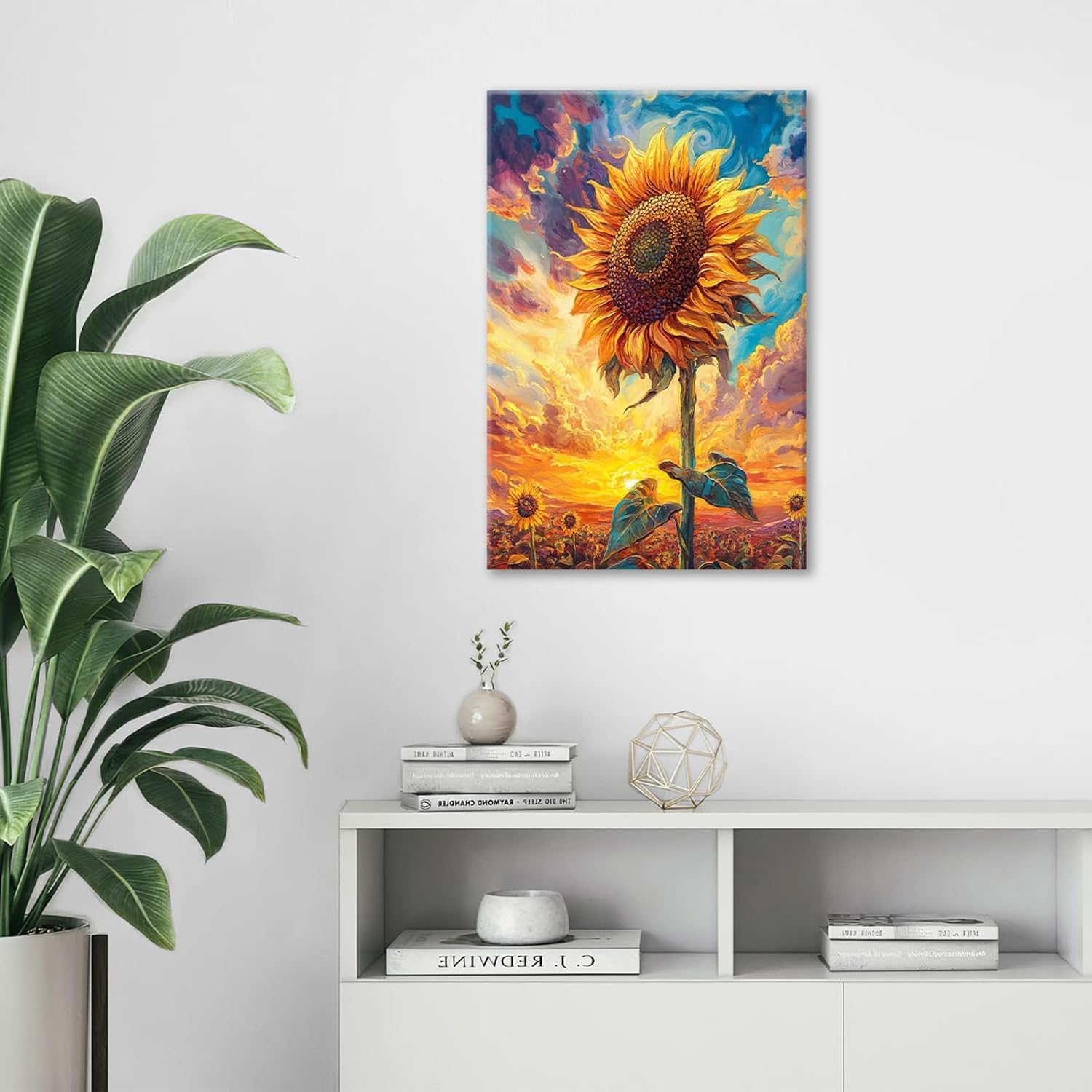 Sunflower Wall Art Canvas Yellow Floral Wall Decor Prints Framed Painting Pictures Gifts Artwork for Bathroom Bedroom Living Dining 16"x24"