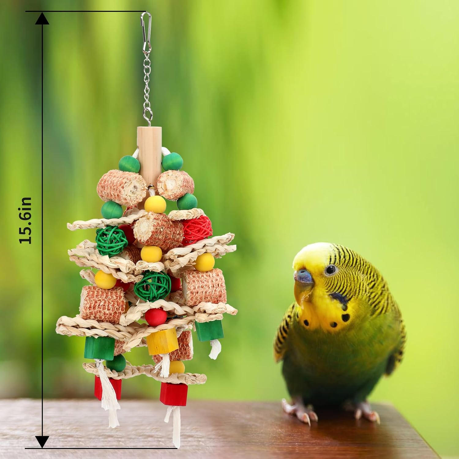 - Size right bird cage accessories: Our parrot toys measure 15.6in x 5.6in, perfect for small to medium sized birds; Suggested for african grey parrots, amazon parrots, budgies, conures, lovebirds and other similarly sized birds, providing an ideal high place for your bird to chew and climb