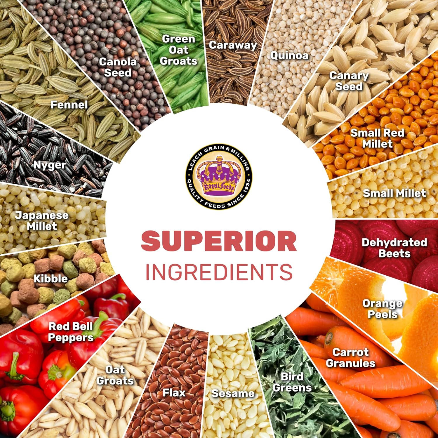 - ππππ ππππ ππππ πππππππππππ β Made with a carefully selected blend of whole grains, seeds, and dried vegetables, including quinoa, canary seed, millet, flax, and nyjer, to provide essential nutrients. A variety of textures and flavors keeps birds engaged and encourages healthy eating habits.
