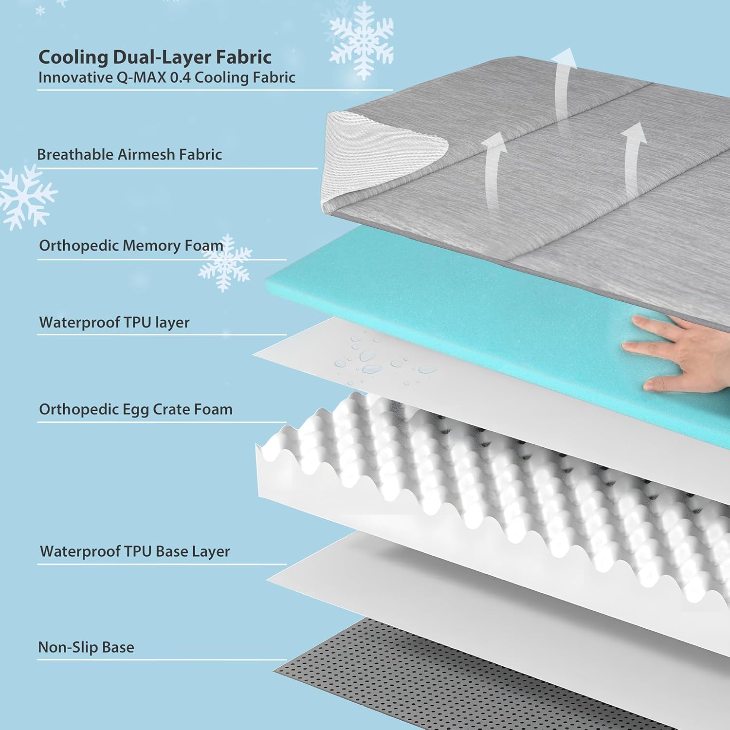 Cooling Dog Bed for Large Dogs - Orthopedic Pet Beds with Memory Foam, QMAX>0.5, Waterproof Removable Washable Cover for Hot Weather, Grey, 35" L x 23" W x 3" H