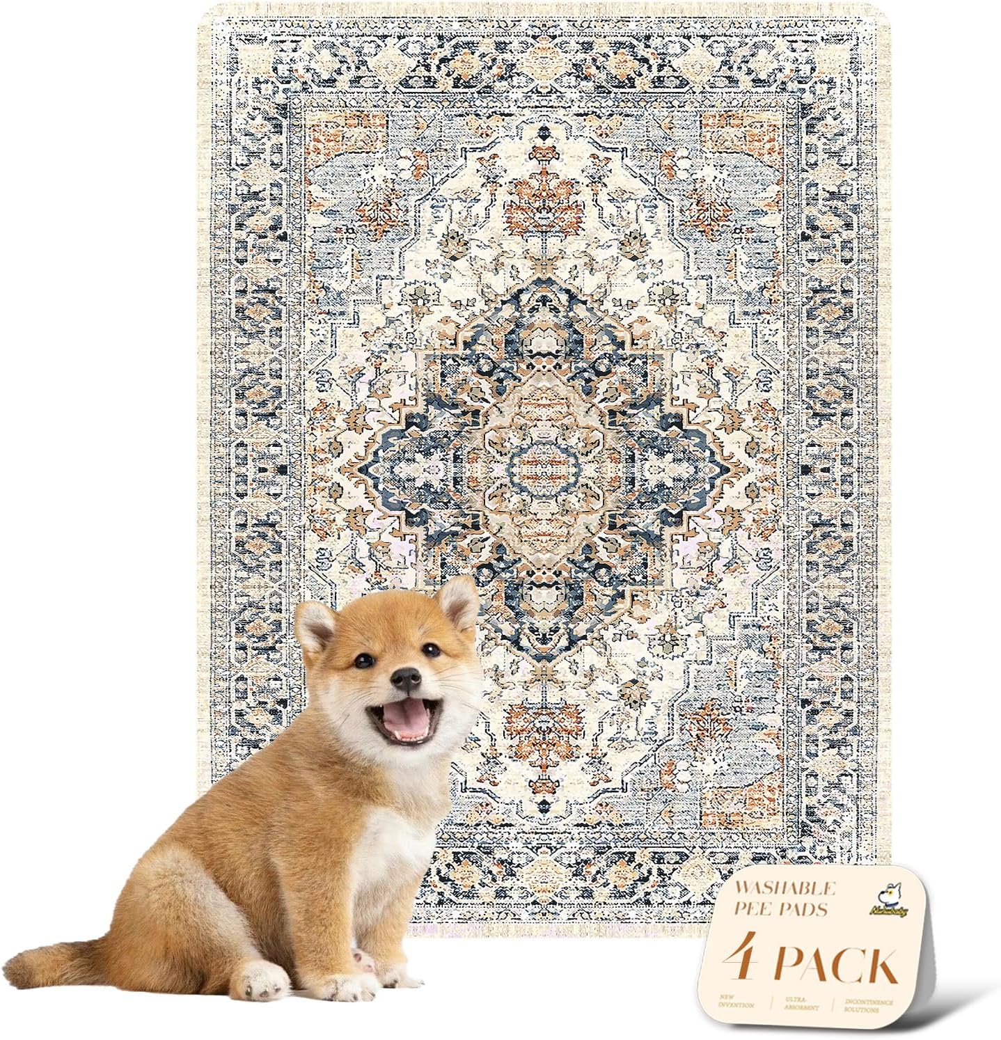 nunubaby 4PACK Washable Pee Pads for Dogs, Stylish, Non-Slip and Leak-Proof Pee Pads. Reusable Potty Pads for Dogs for Crates and Floors.(Beige/Multi, 18" x24")