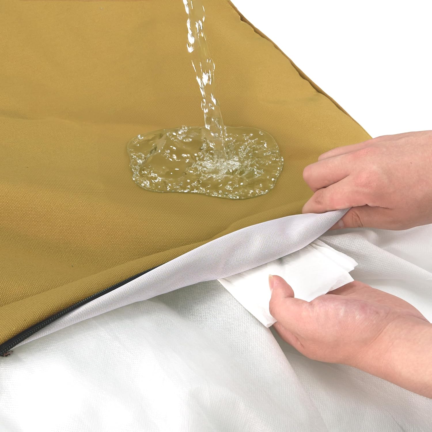 - đ§ŒăEasy to Clean and Outdoor-Ready Durabilityă Our dog bedâs removable, heavy-duty cover features a hidden zipper for easy cleaning. Designed for indoor and outdoor use, the waterproof 420gsm spandex-coated canvas resists rain, mud, and spills. Simply wipe clean or machine wash on a gentle cycle.