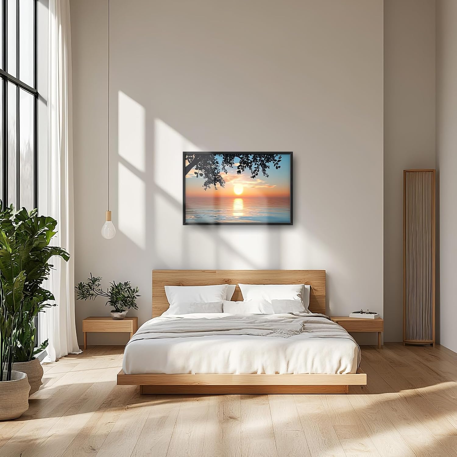 Framed Large Lake Sunset Wall Art, Oversized Natural Landscape Wall Decor for Living Room, Tree Leaves Canvas Painting Pictures Home Decoration for Living Room Bedroom Office 36"x24"