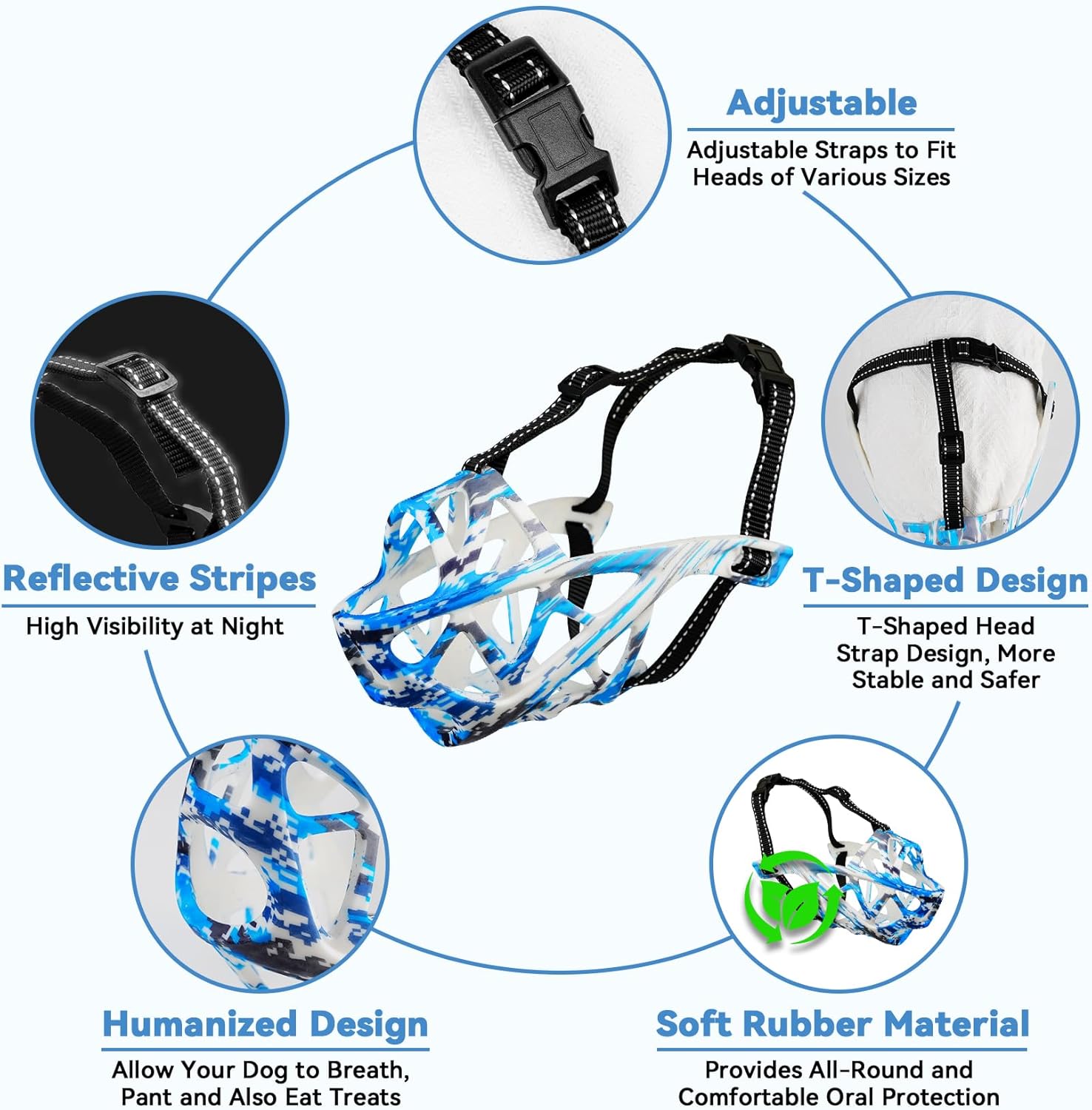 - Eco-Friendly Material for Safety and Durability: Our Dog Muzzle for Large Dogs is Crafted from Non-toxic, Environmentally Friendly TPR Silicone. This Lightweight yet Durable Material Is Odorless, Soft to the Touch, And Sturdy Enough to Resist Deformation, Ensuring Long-Lasting Use While Prioritizing Your Pet’s Safety