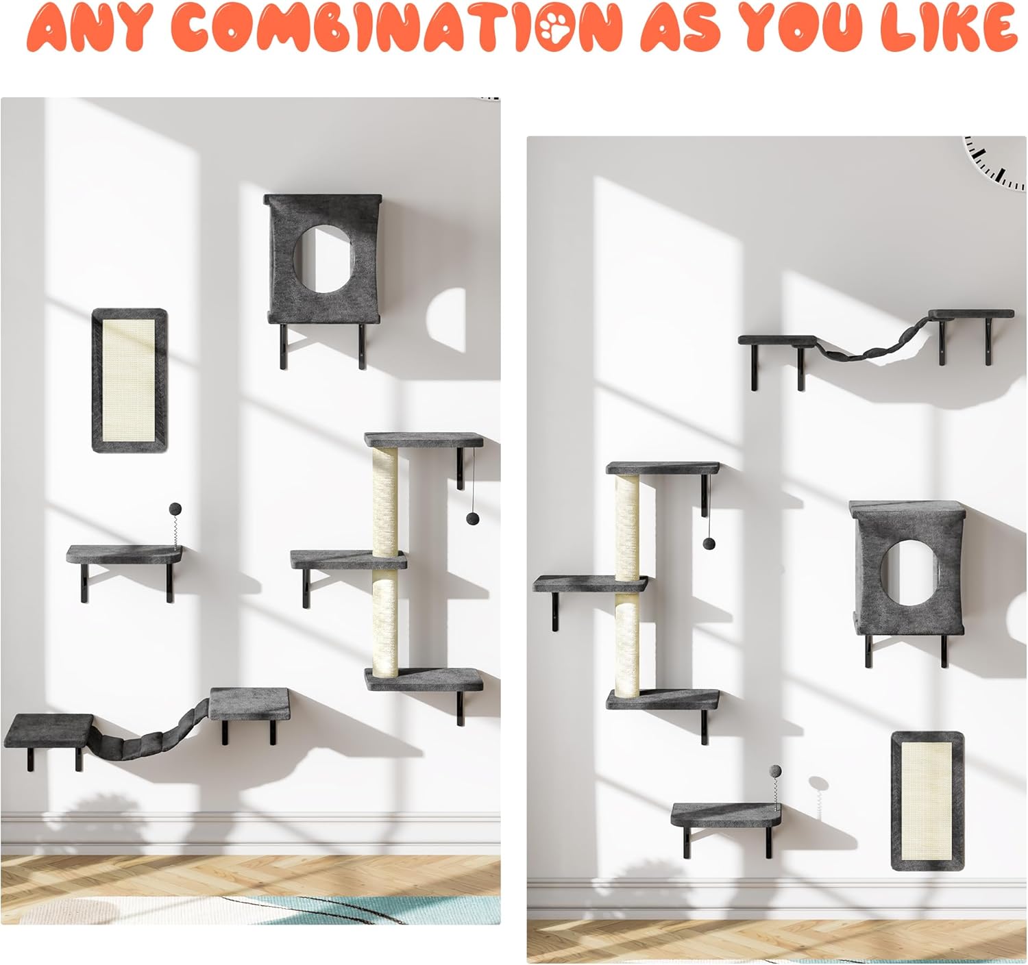 - 【DIY ADJUSTMENT, EASY TO INSTALL】Cat rack kit with screws for mounting. Detailed instructions are included in the package, easy to install with just an electric drill! You can rearrange the combination according to the space requirements, adjust to the height suitable for cat jumping. Beautiful and practical, adapting to various furniture environments.