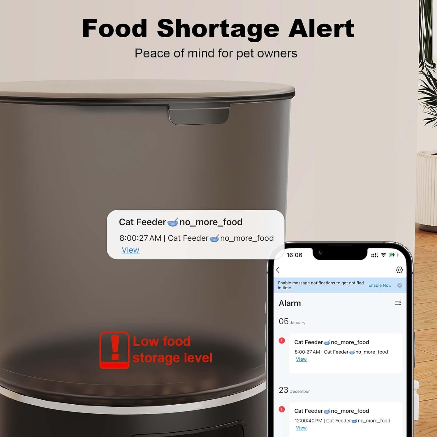 - [Smart WiFi Control & Multi-User Access]‌ "Remotely program 1-10 daily meals via Tuya App (iOS/Android compatible). Monitor feeding records in real-time and share device access with family members. Stable 2.4GHz connection ensures smooth operation worldwide.