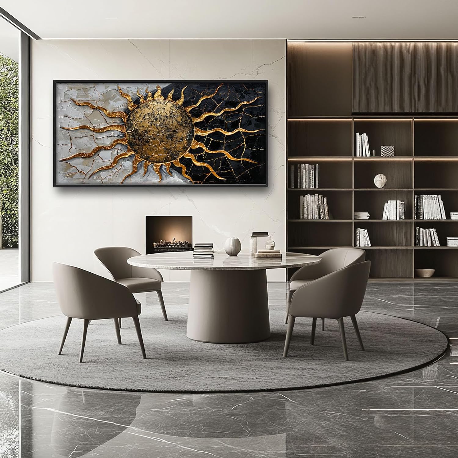 Quorin Golden Sun Large Wall Art Abstract Day and Night Pictures Black and Golden Wall Decor Canvas Print Painting Artwork for Bathroom Living Room Bedroom 60L x 30W