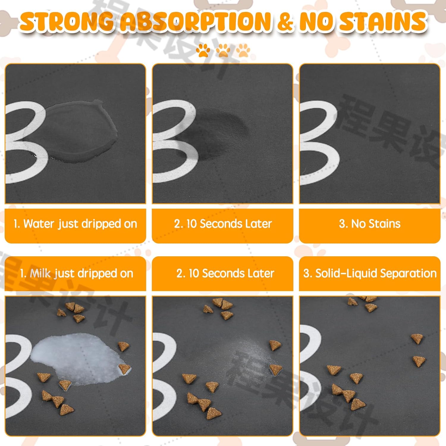 - 【Absorbent & No Stains】: The dog food mat can stop water from overflowing. Super absorbent and quick-dry feature can avoid wetting pet paws even for messy drinkers. No marks would be left when food and water are dropped on the dog food mat. Good dog products to care your pet while reducing the times of cleanings. Tips: Due to long-distance sea transportation, the mat is folded for transportation, there may be creases on the mat. However, please rest assured that the creases will disappear after being left for a period of time.