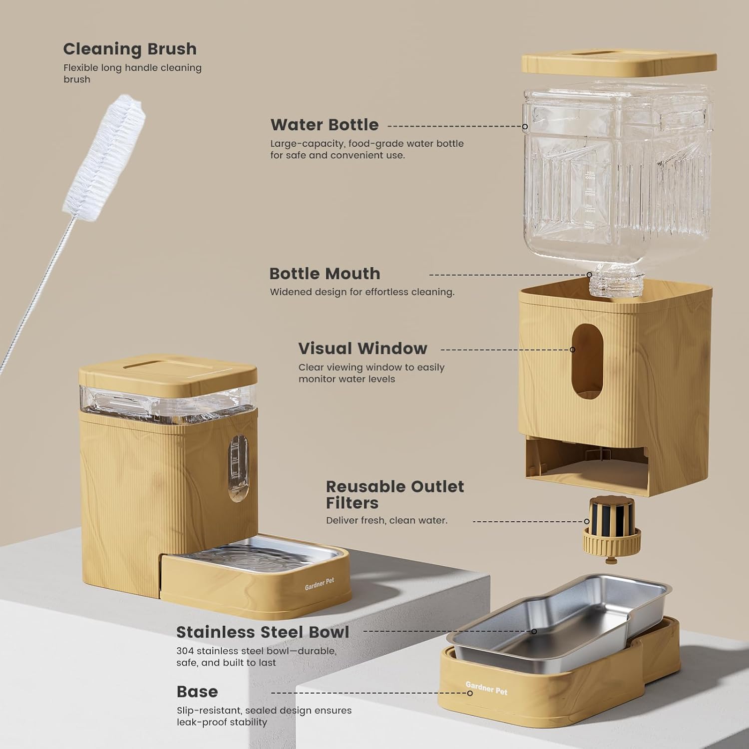 - Premium Pet-Safe Materials - Gardner Pert dog water bowl dispenser comes with 304 stainless steel bowl + cleaning brush guarantees a safe, easy-to-clean water supply for pets.