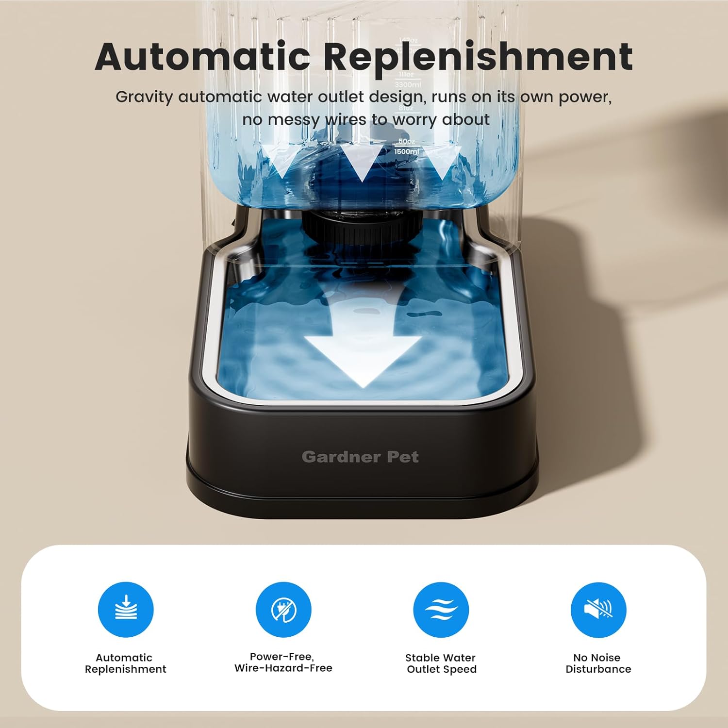 Gardner Pet Automatic Dog Water Dispenser Gravity Waterer with Stainless Steel Bowl Water Dispenser 8.5L Large Capacity Water Feeder for Dogs Cats Pets, BPA-Free Noise-Free (Black, 8.5L)