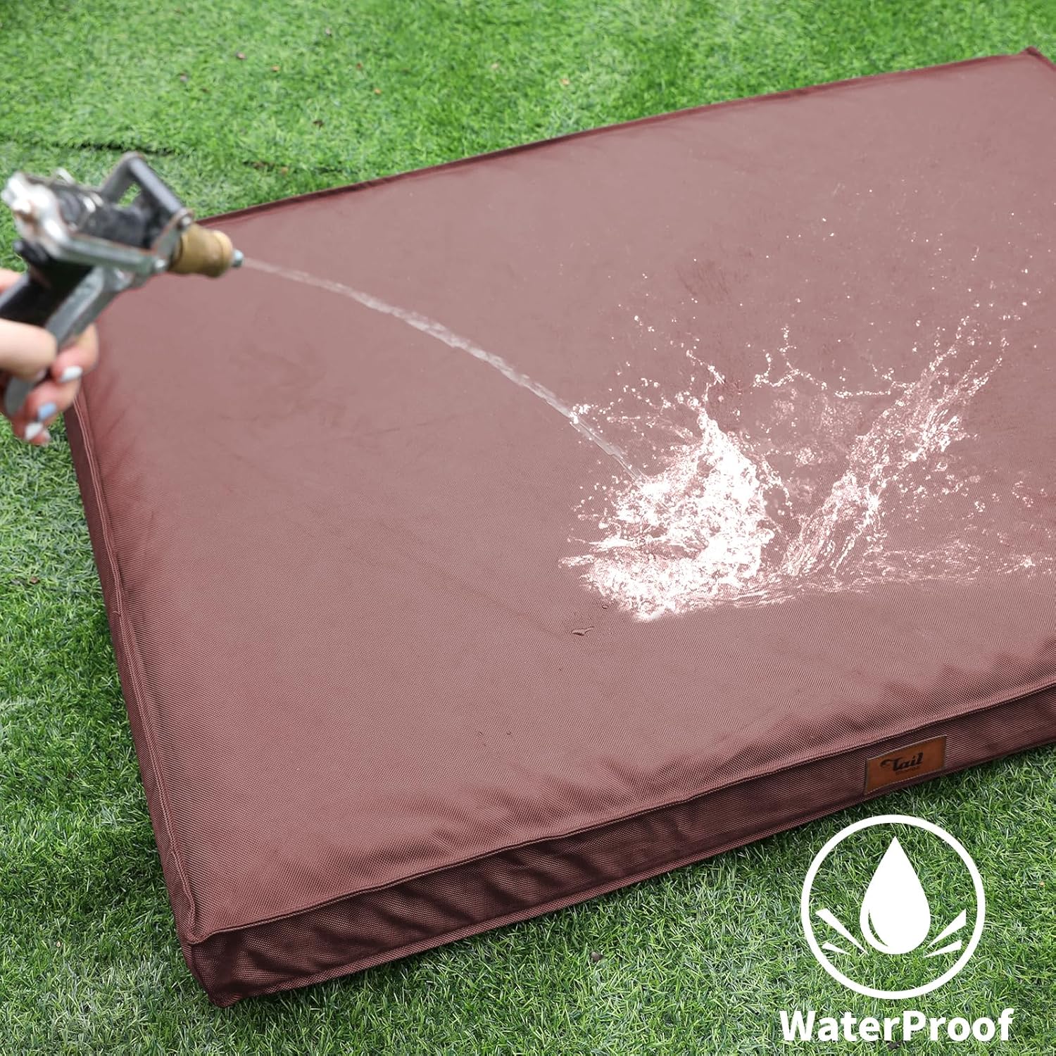 - Oxford Fabric: Tail Stories waterproof dog bed is made of 600D oxford fabric with PVC, features in premium-quality, cooling. The size of 44" x 32" is not suitable for a dog crate.